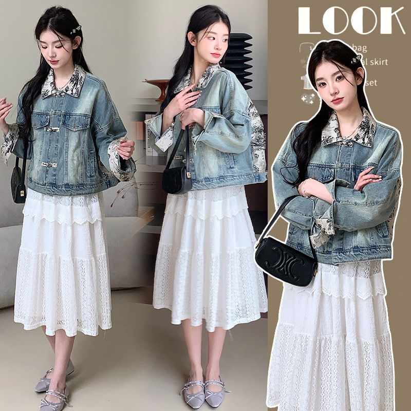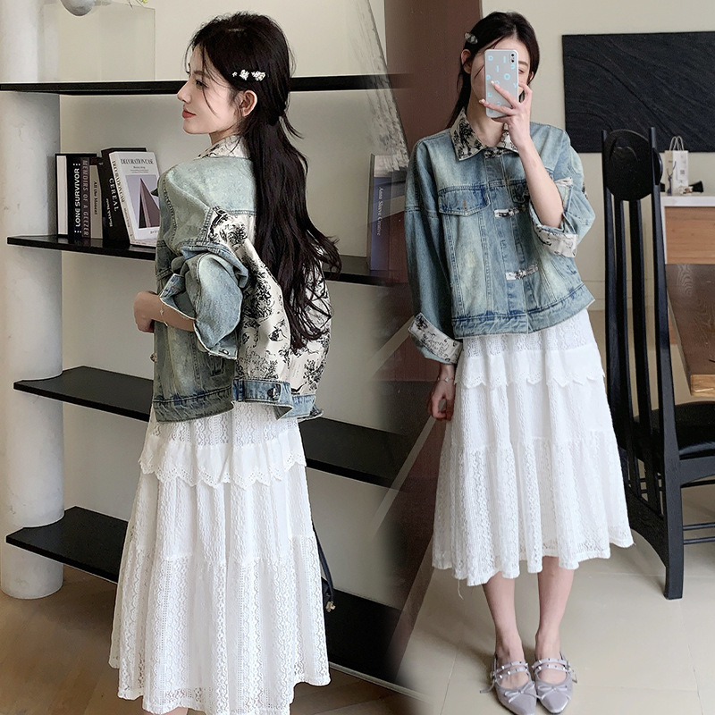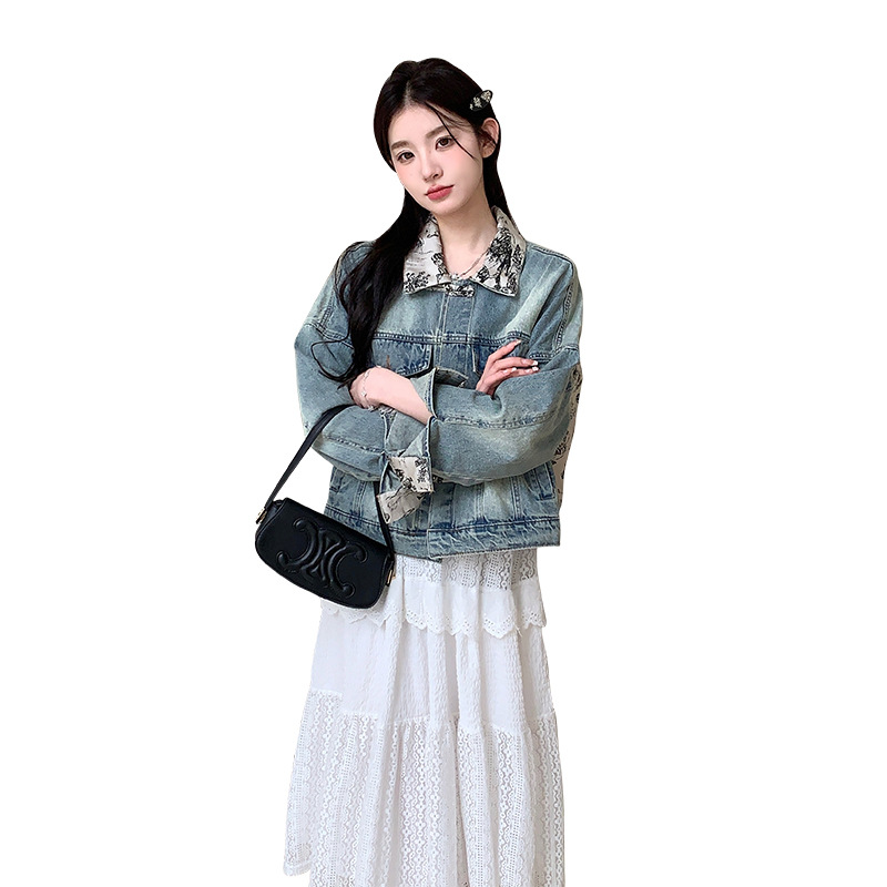 Ink painting stitching new Chinese denim coat women’s spring and autumn 2024 new national style design chic jacket top