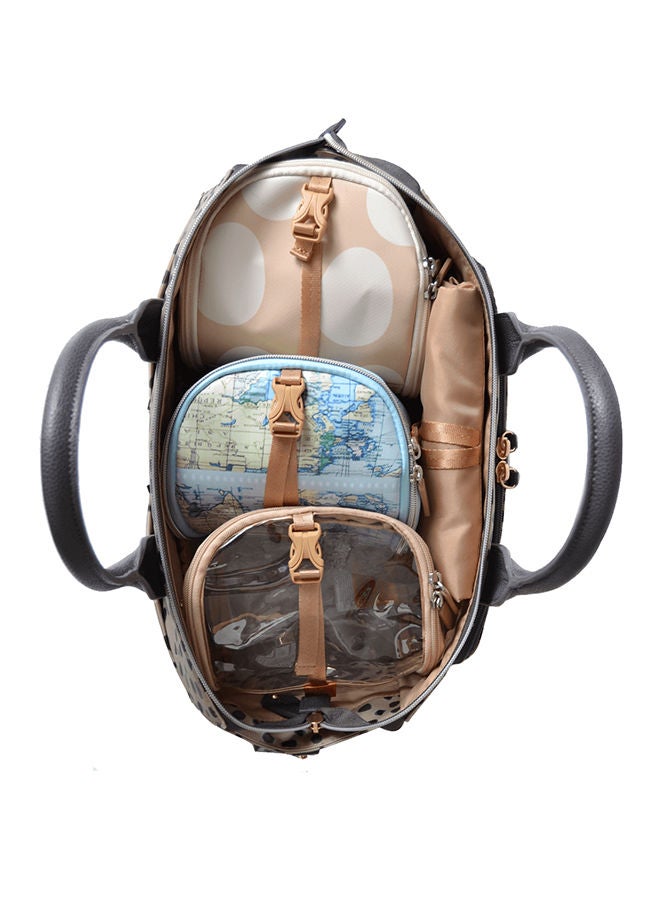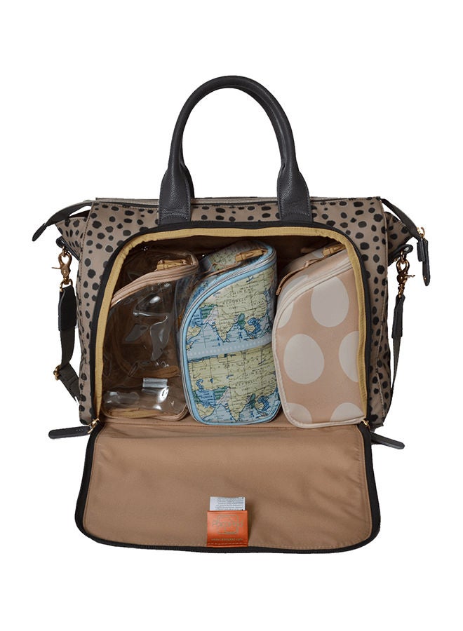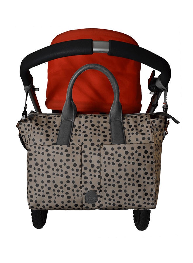 The Croyde Baby Diaper Backpack features multiple compartments and pockets, including a large main compartment, insulated bottle pockets, and a front pocket for easy access to your phone, keys, and wallet. The backpack also includes a changing pad and stroller straps for added convenience.
