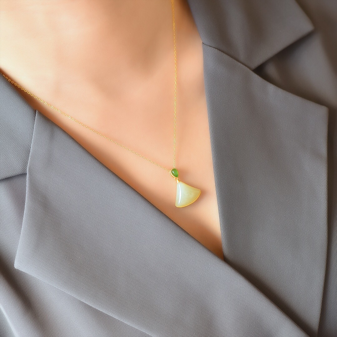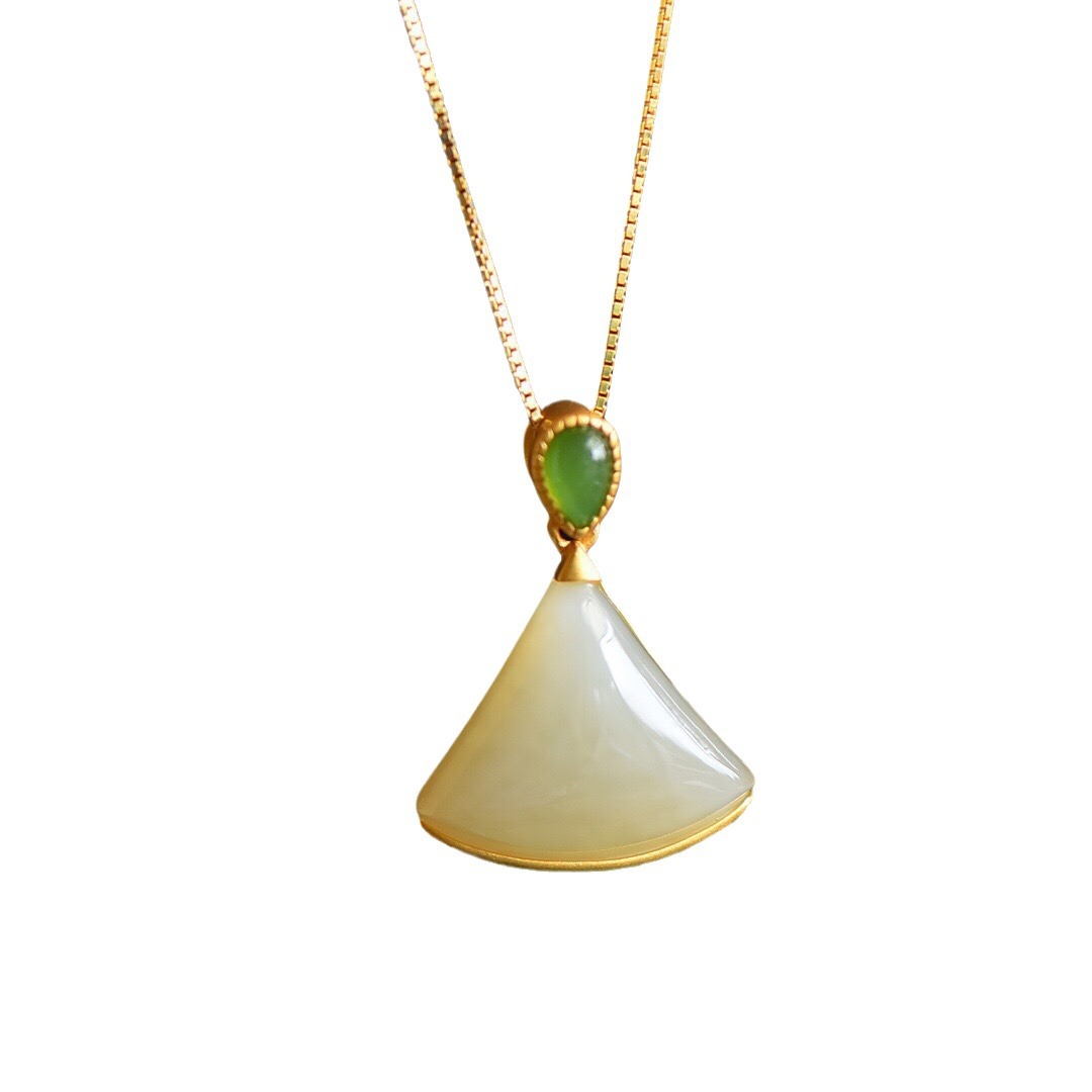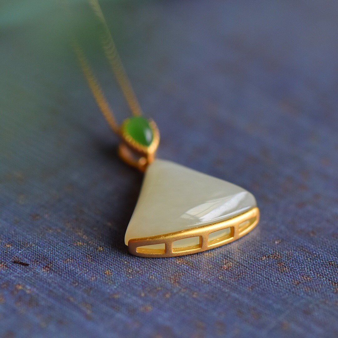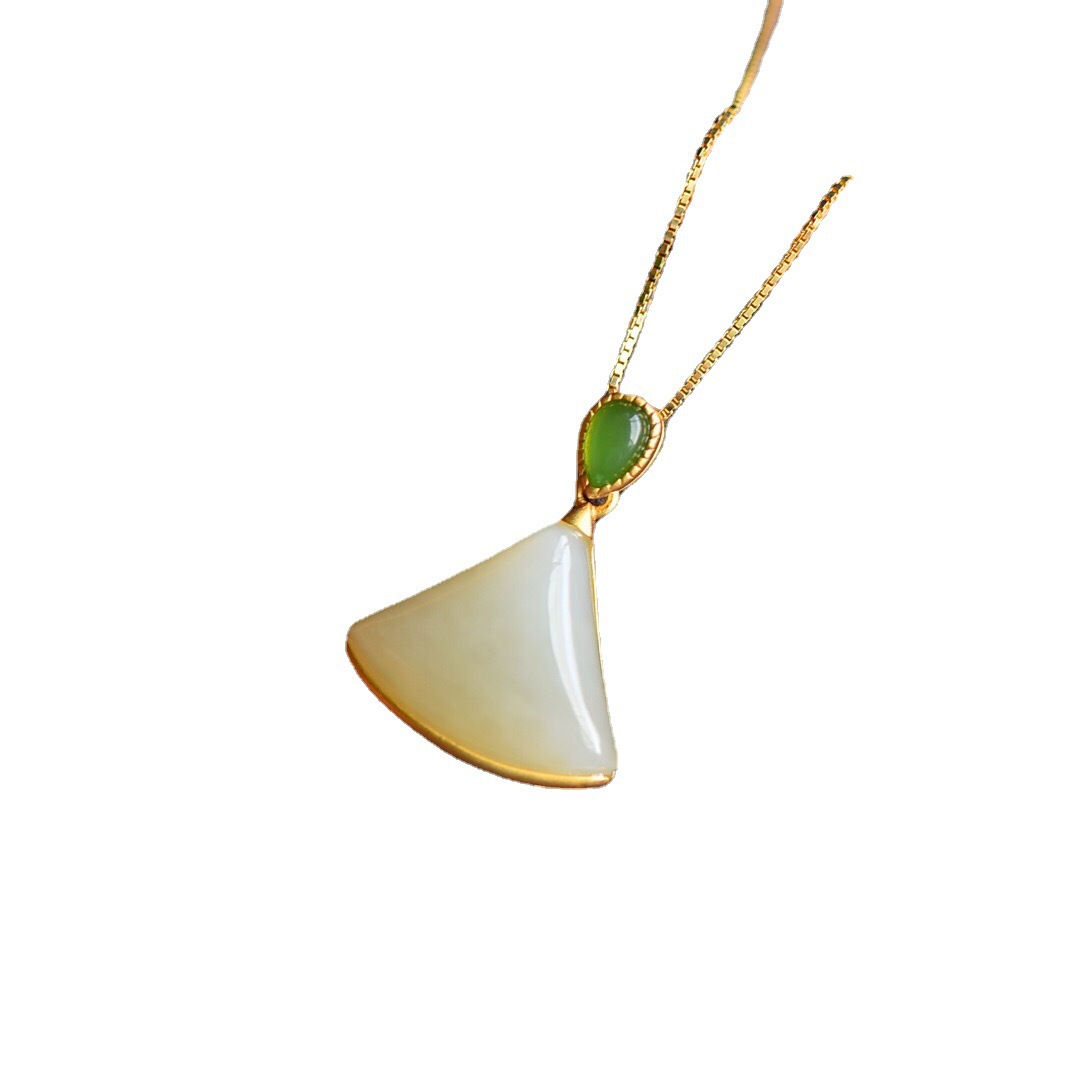 | nameOriginal | Inlaid Xinjiang Hetian jade s925 silver gold-plated White Jade with Jasper skirt-shaped pendant fashionable simple temperament women's pendant |