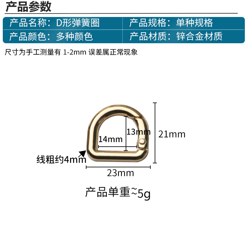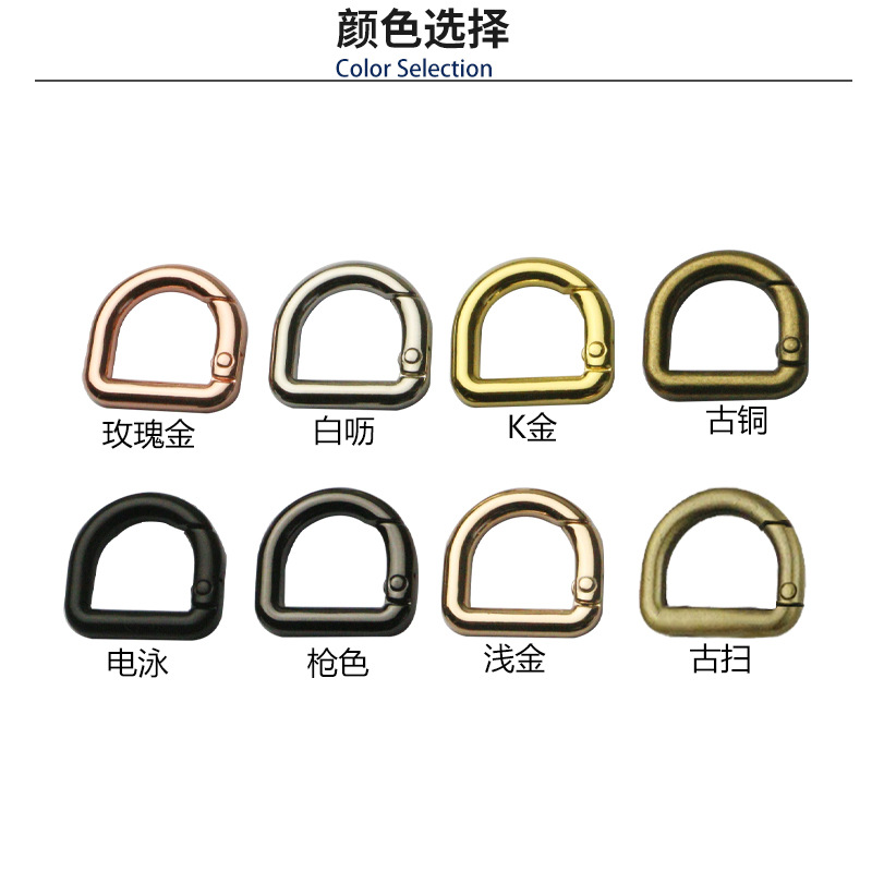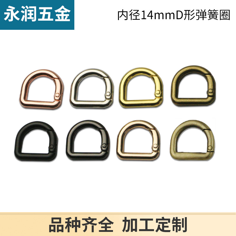 | nameOriginal | Inner diameter 14mm luggage hardware accessories D-shaped spring ring alloy open ring strap connection spring buckle |