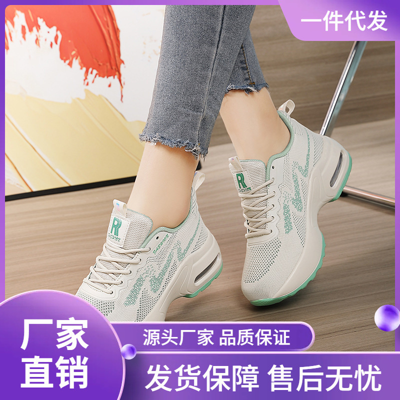 Inner Height Increasing Women's sneaker All-match Mesh Breathable White Shoes Thick-soled Jumping Ghost Walking Shoes Soft-soled Height Increasing Square Dance Shoes