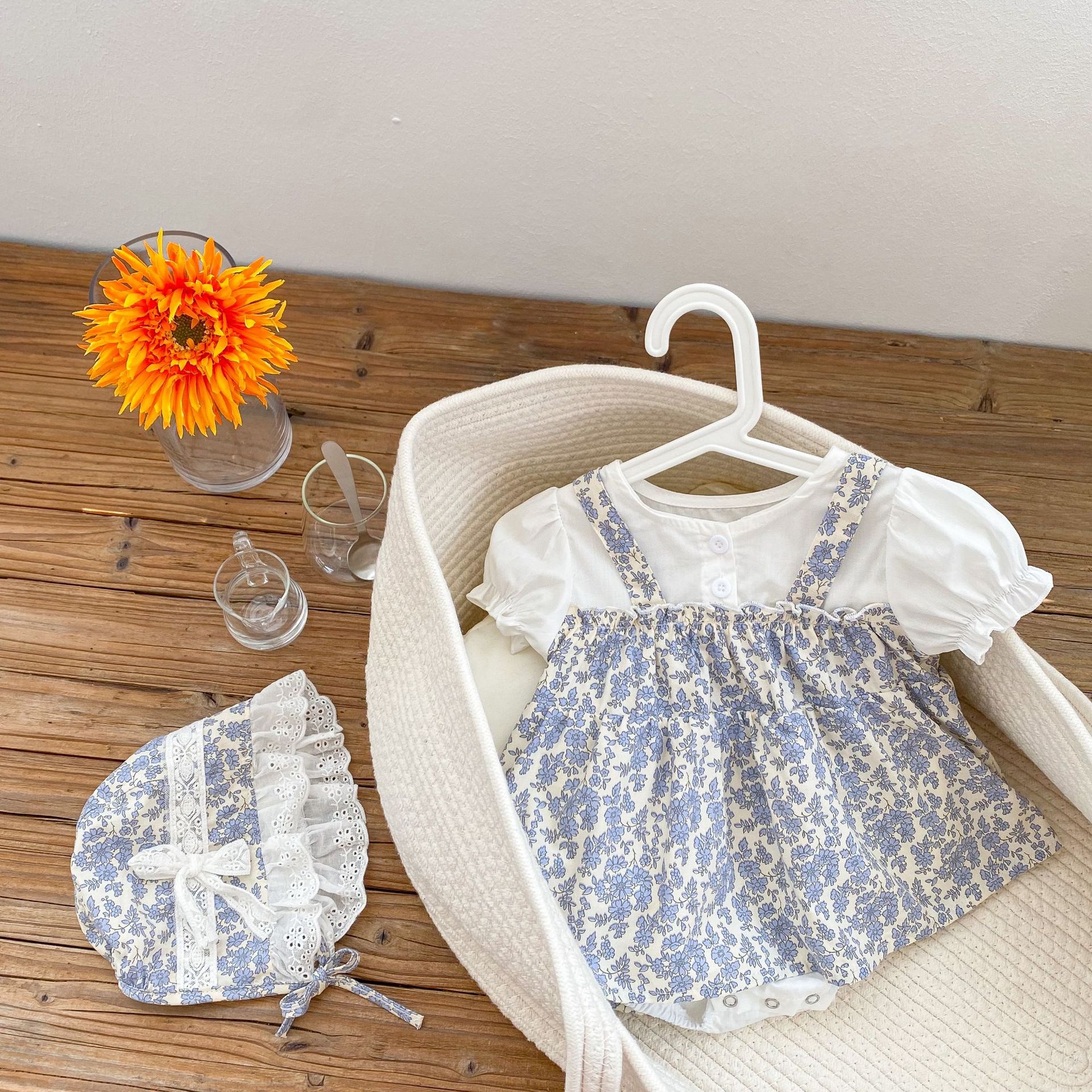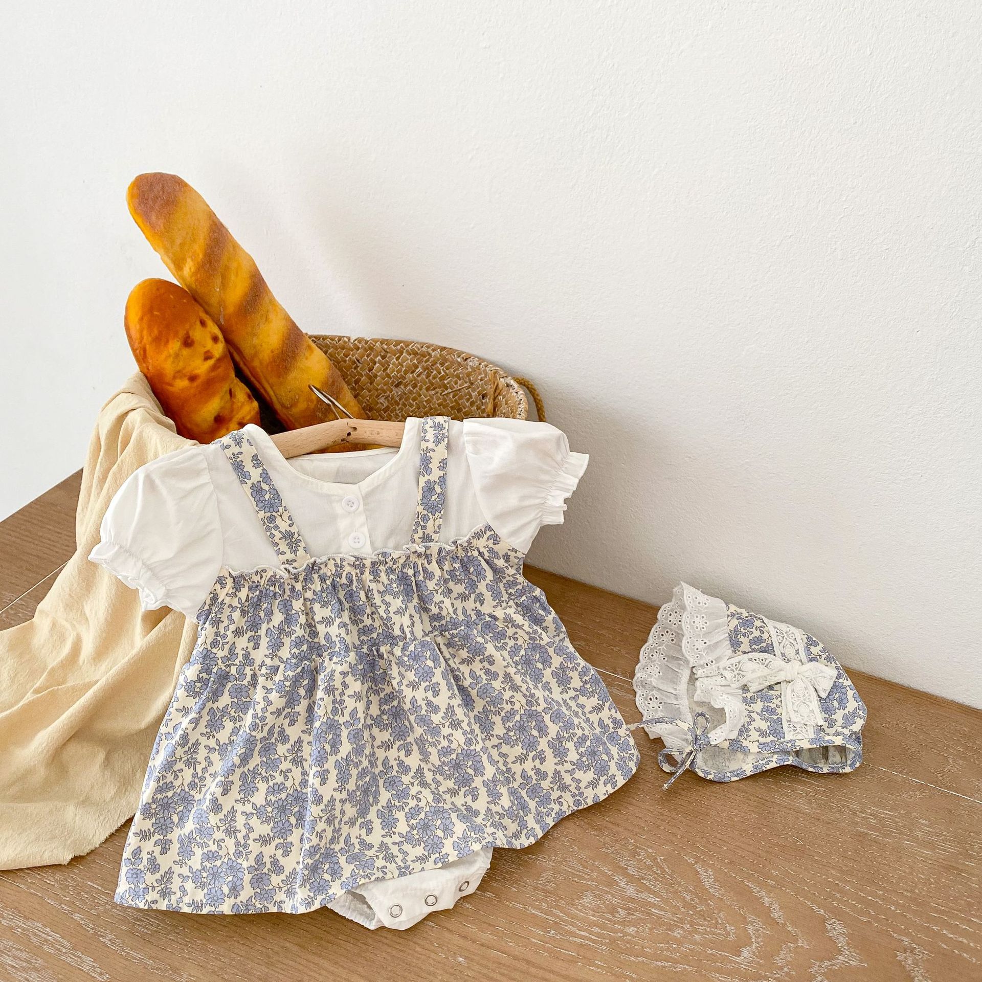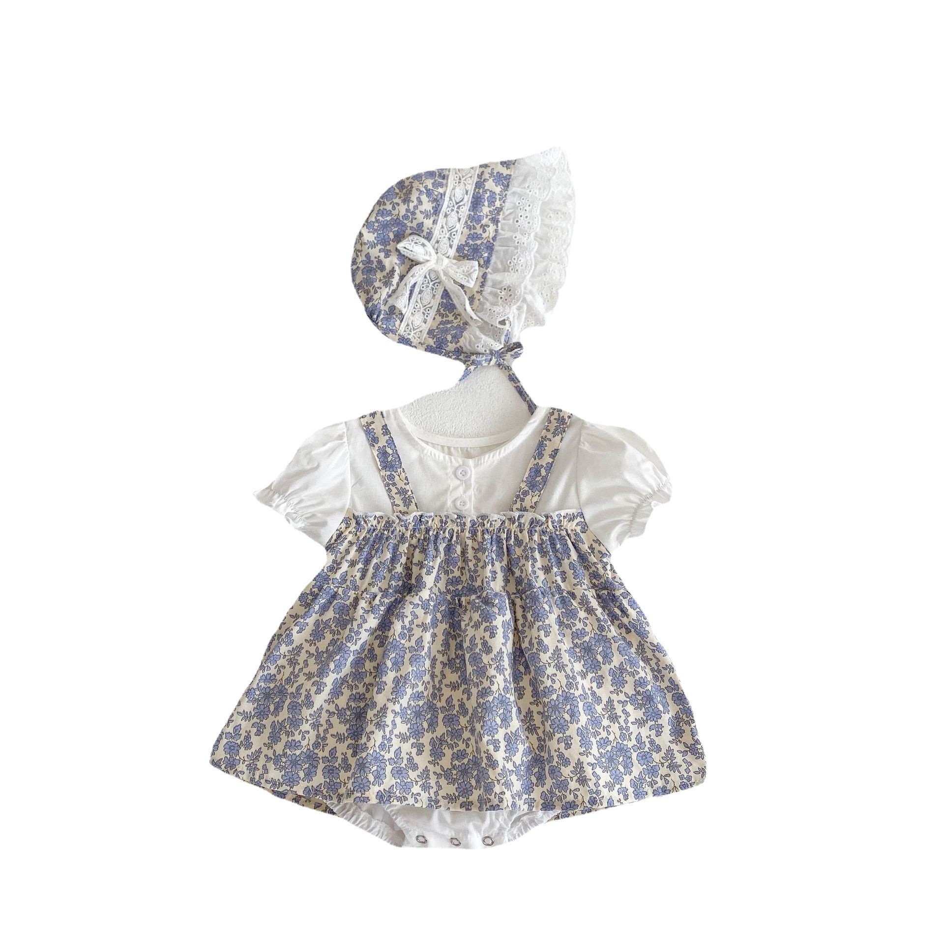 | nameOriginal | Ins 2024 Summer Dress Full Moon Baby Baby Dress Small Broken Flower Princess Fake Two-piece Triangle Ha-ha Dress Hat |