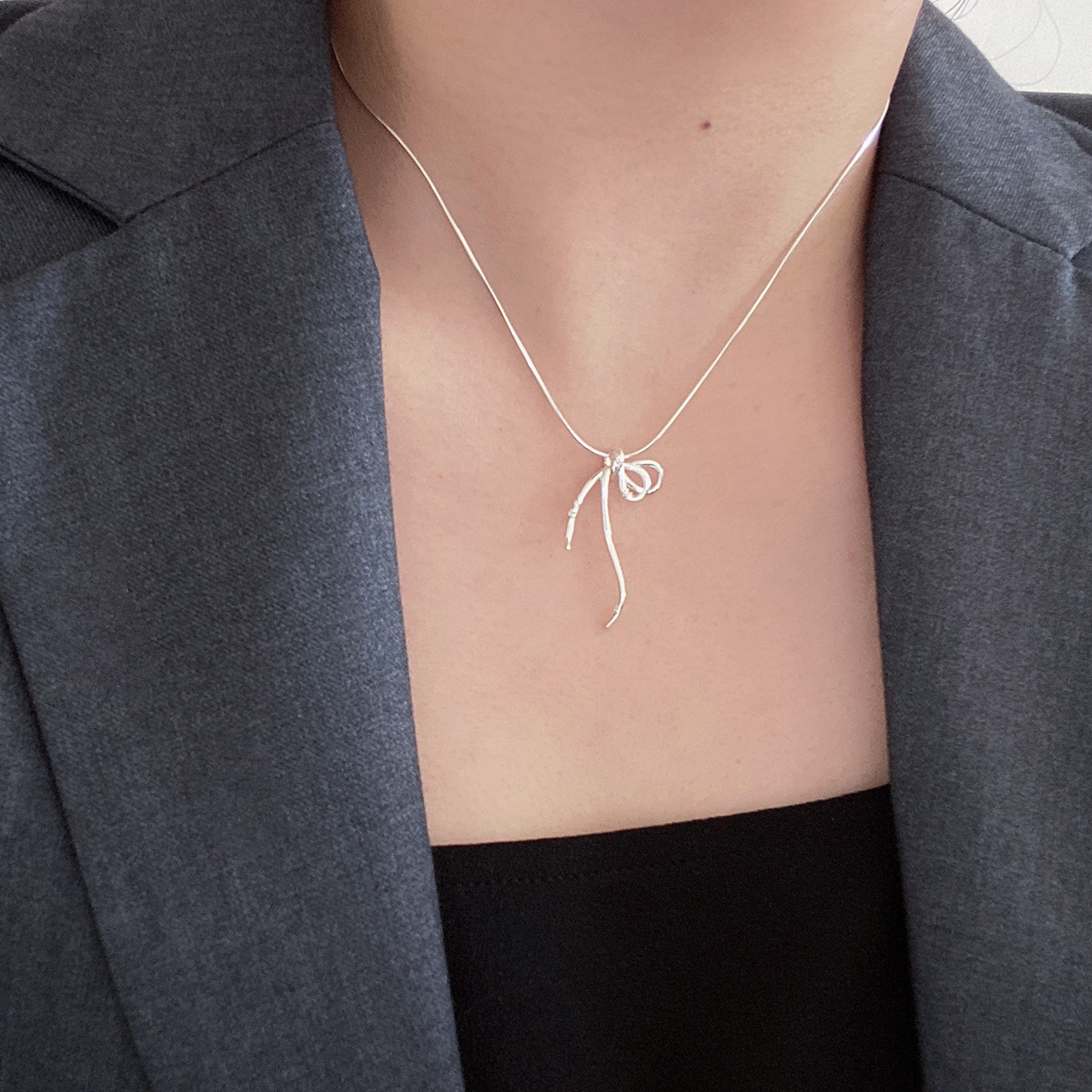 ins 925 sterling silver women's clavicle chain with knotted bow