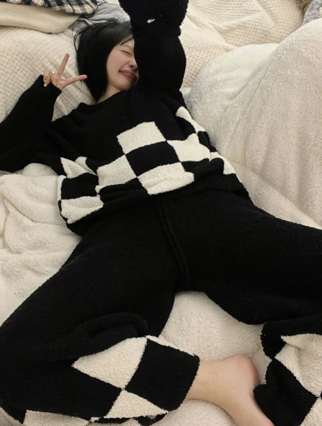 | nameOriginal | ins advanced checkerboard long-sleeved pajamas for women plus velvet and thickened winter 2024 new trousers home wear set |
