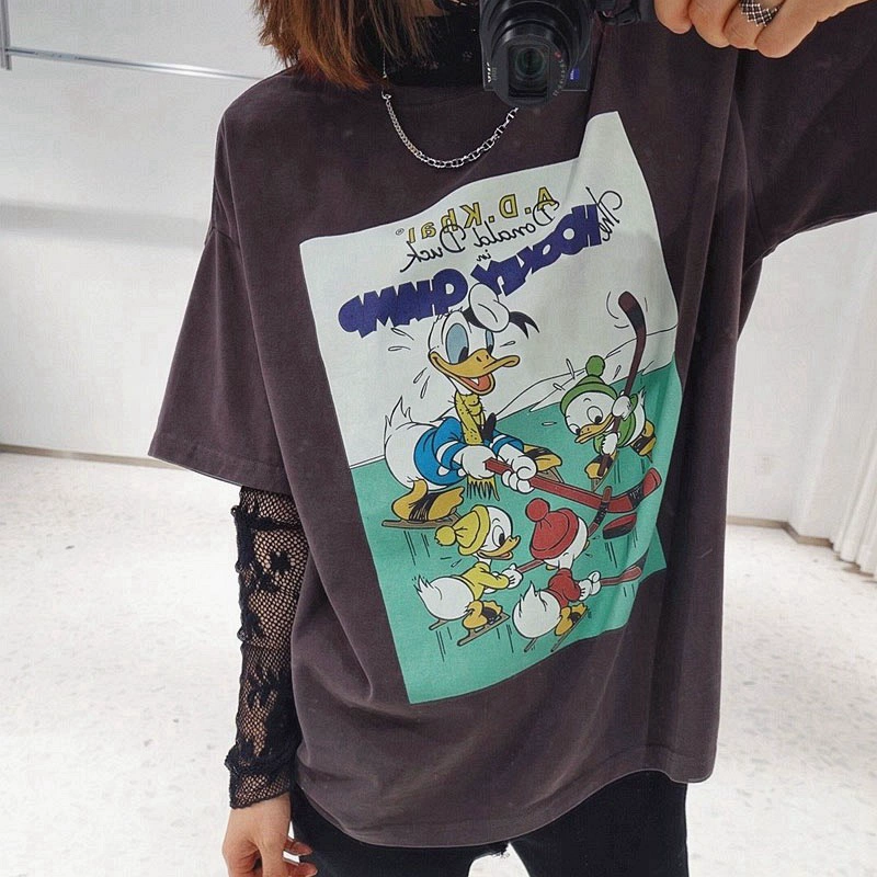 | nameOriginal | ins American niche design cartoon printed short-sleeved women's oversize loose Korean version versatile tops for couples |