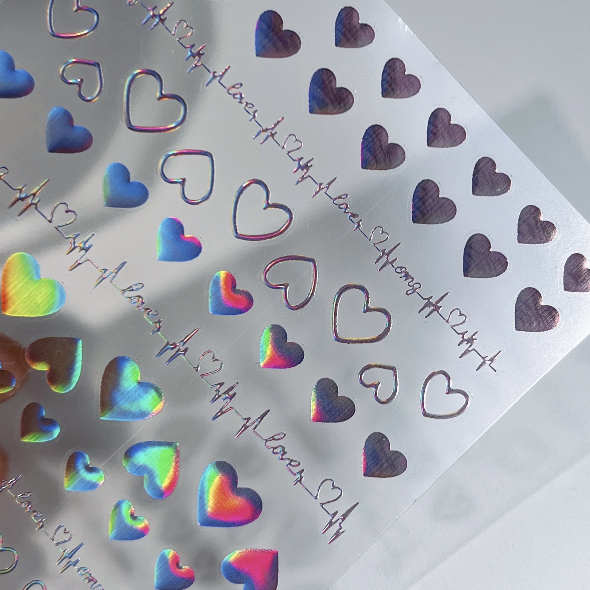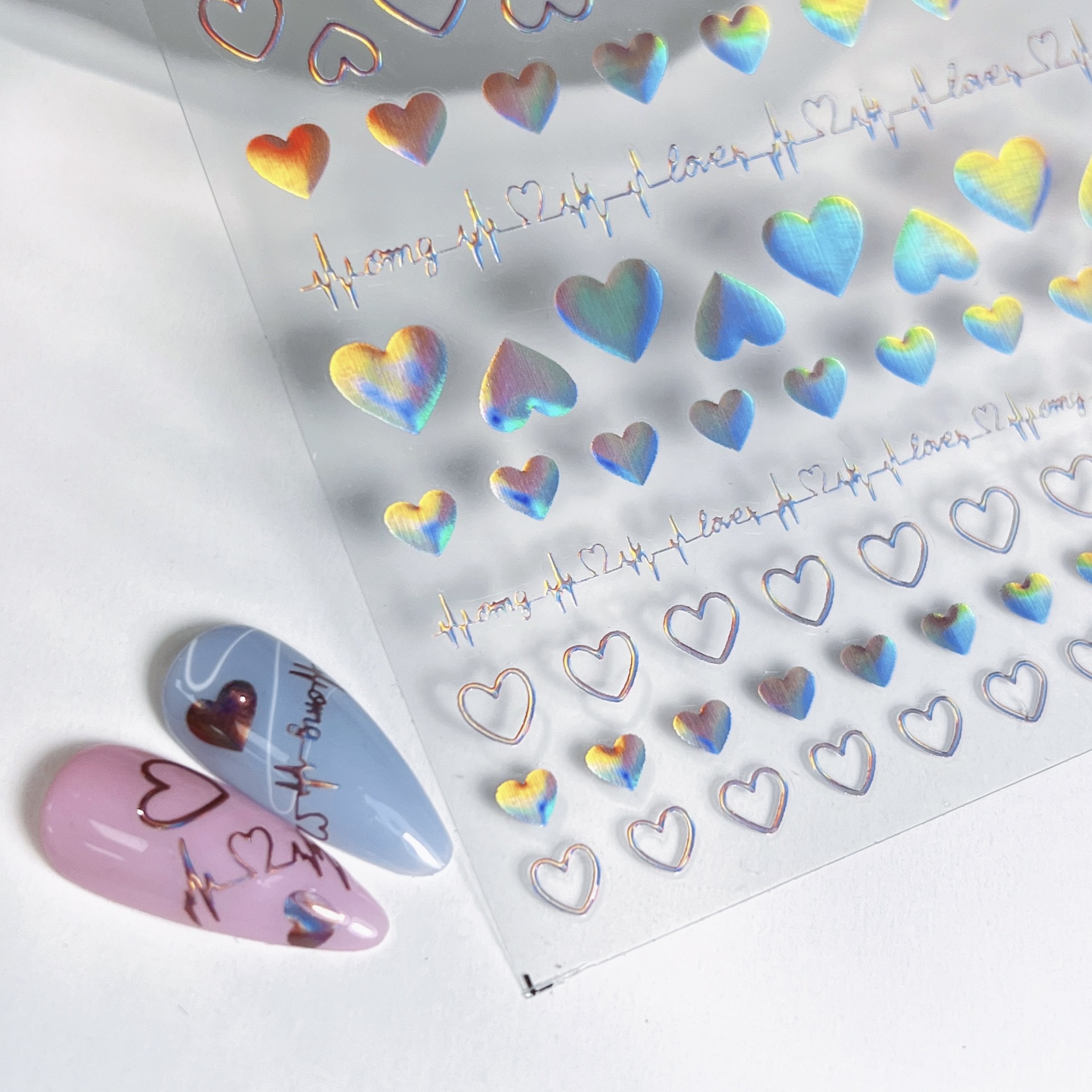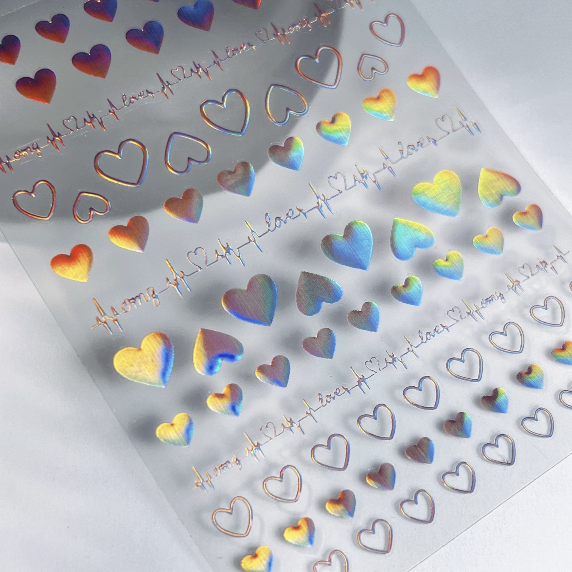 Ins Aurora Colorful Love Nail Art Sticker Colorful Aurora Heart-shaped Solid Adhesive Self-adhesive Nail Sticker for Women