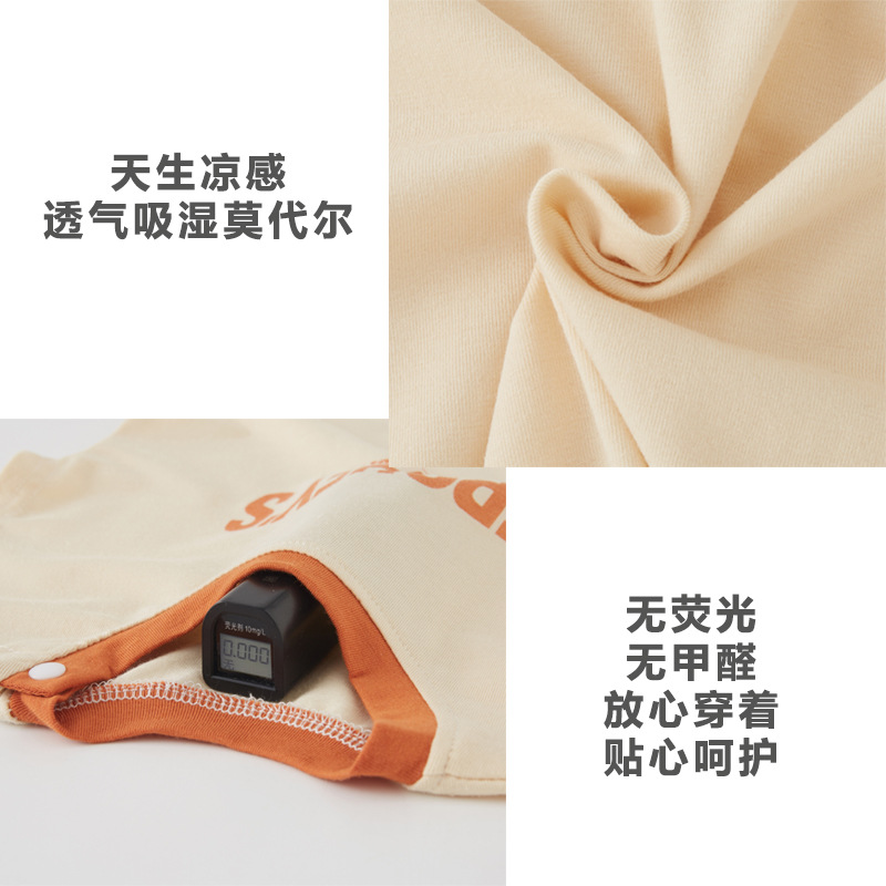 ins Baby Modal Summer Korean-style Short-sleeved Letters Jumpsuit Men's New Solid Color Climbing Suit