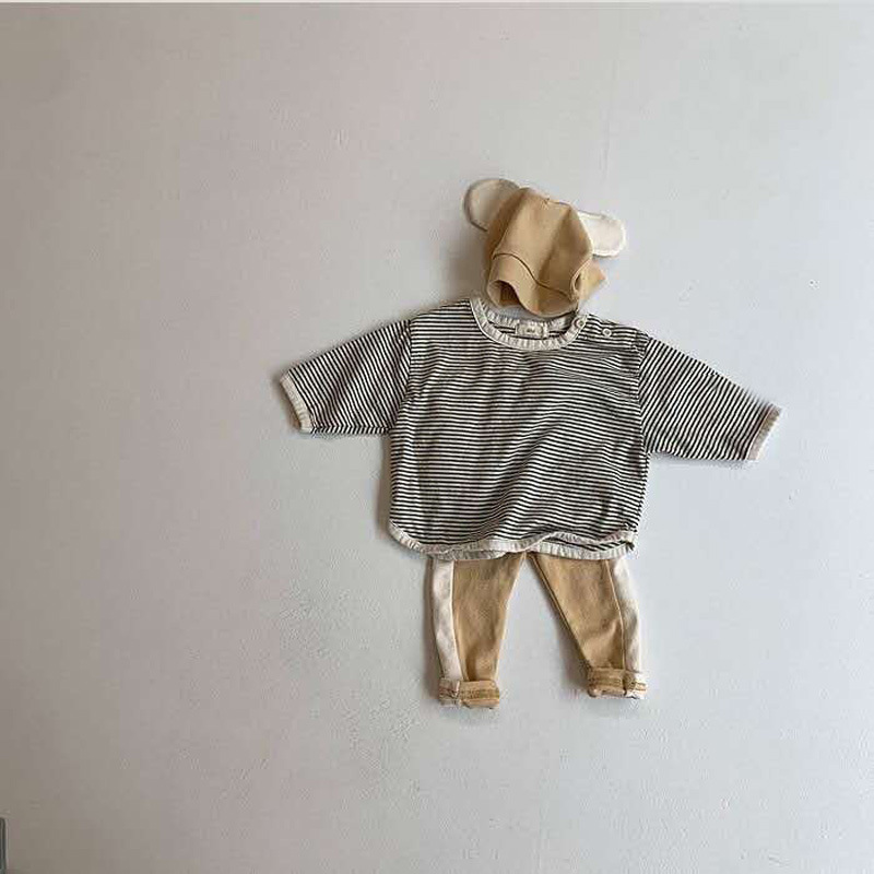 | nameOriginal | ins Baby Soft Striped T-Shirt for Boys and Girls Baby Shoulder Buckle Crewneck Base Shirt Stylist Top Korean Spring and Autumn |
