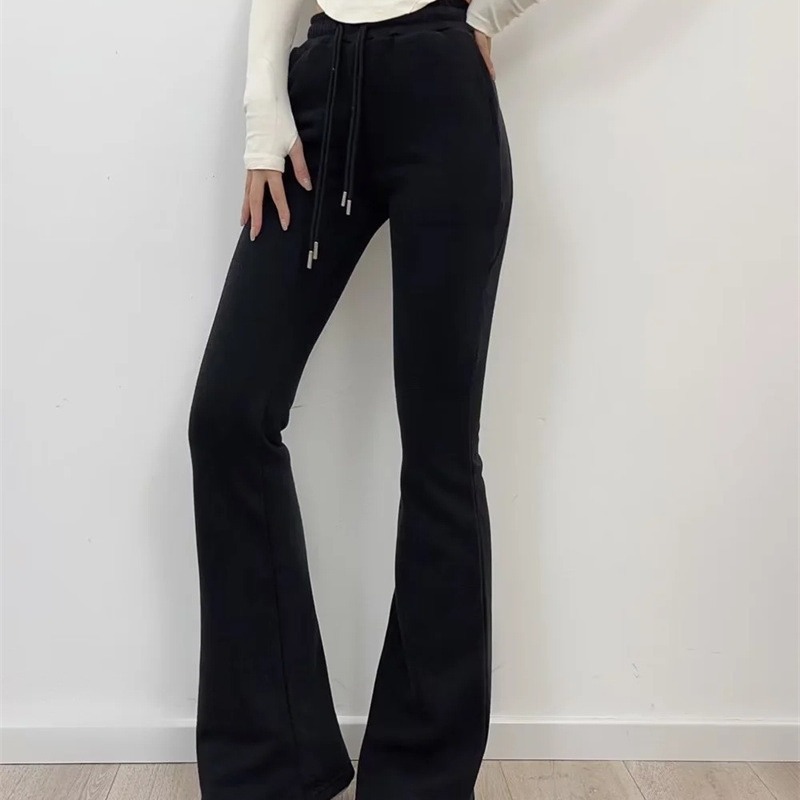 | nameOriginal | INS blogger fleece-lined thick sweatpants autumn high waist slimming flared pants small double drawstring wide leg pants |