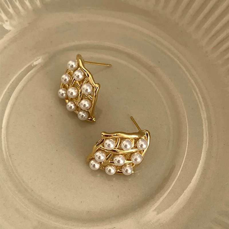 | nameOriginal | Ins blogger's same style women's textured metal pearl earrings |