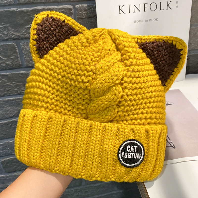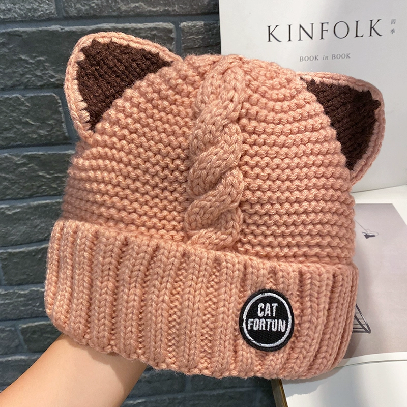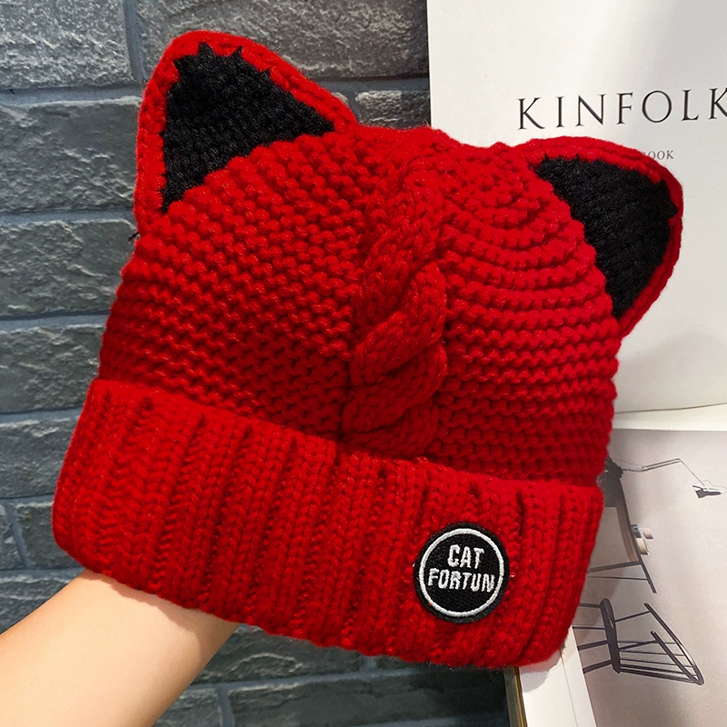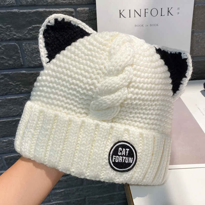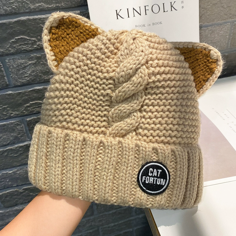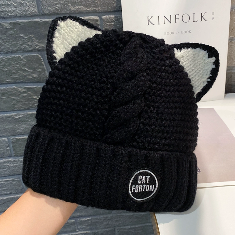 | nameOriginal | ins cat ears knitted woolen hat for women plus velvet thickened warm autumn and winter hat cute and versatile bag head cold hat trend |