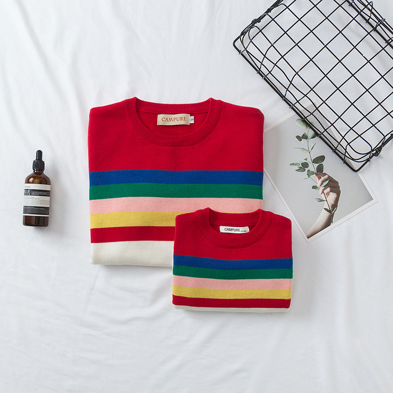 | nameOriginal | ins children Korean sweater Spring and Autumn Rainbow pullover bar bottoming shirt striped sweater parent clothing wholesale |