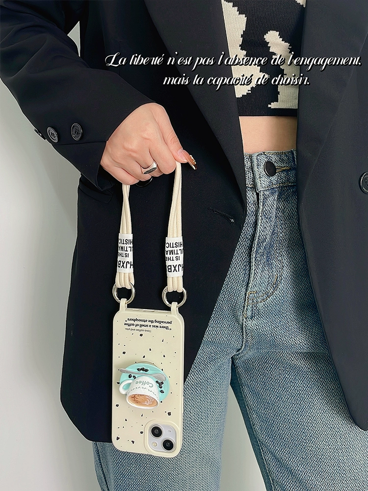 ins coffee stand crossbody lanyard suitable for apple 14 mobile phone case iphone13 chain 12 can be carried on the back 11 halter x