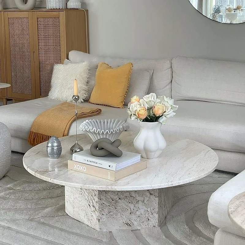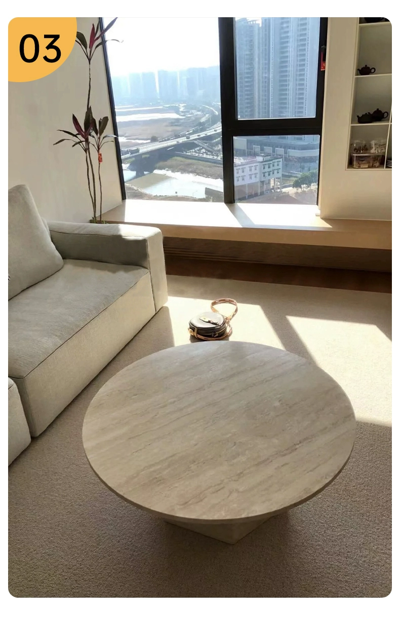 ins cream style internet celebrity round table natural travertine