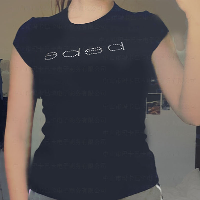 | nameOriginal | ins cross-border European and American style summer letters rhinestone slim fit fashion street round neck pullover short women's top T-shirt |