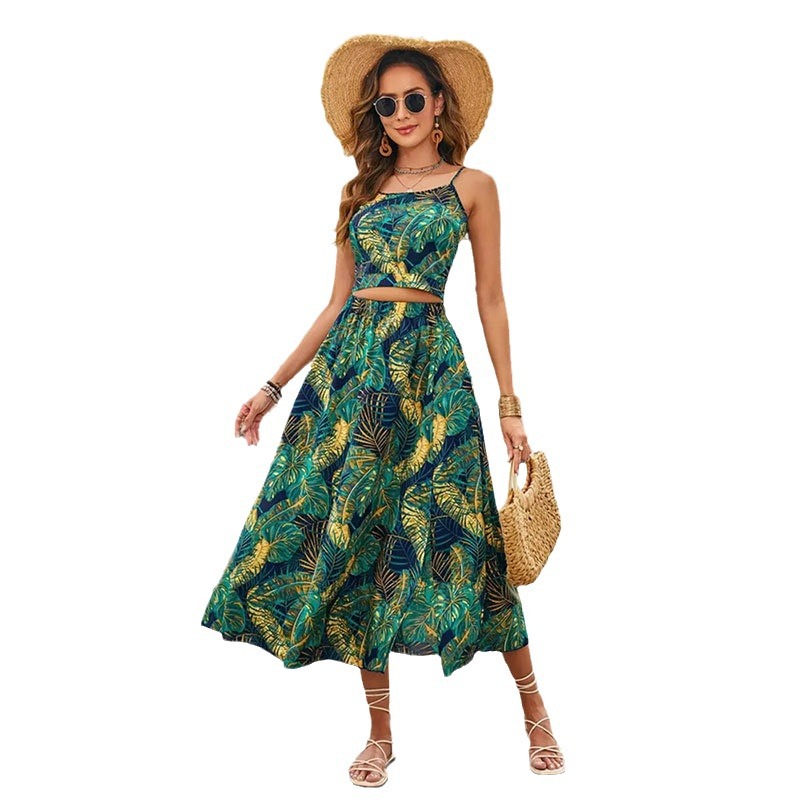 | nameOriginal | Ins Cross-border Foreign Trade Skirt Printed A- line Skirt Camisole Vest Split Strap Skirt suit Women's Two-piece Set |
