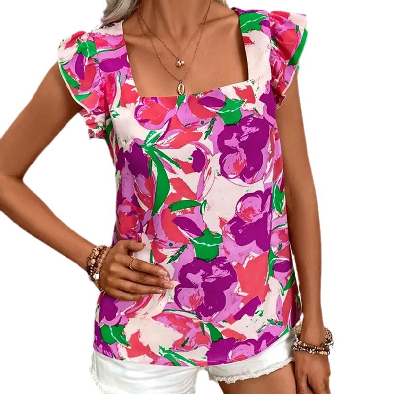 | nameOriginal | Ins Cross-border Foreign Trade Square Collar Ruffled Flying Sleeve Printed Top for Women Elegant Sleeveless T-shirt for Women Spring and Autumn |