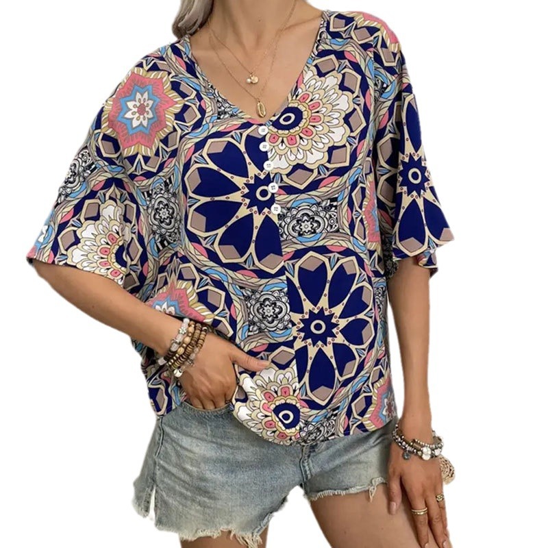 | nameOriginal | Ins Cross-border Foreign Trade Women's Clothing Spring and Summer Loosen Version Bat-sleeved Short-sleeved Top Women's Famous Ethnic Style Printed T-shirt Women's Spring and Autumn |