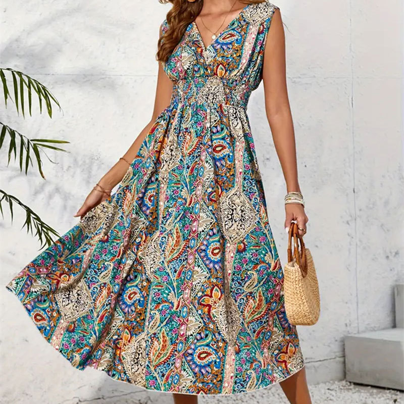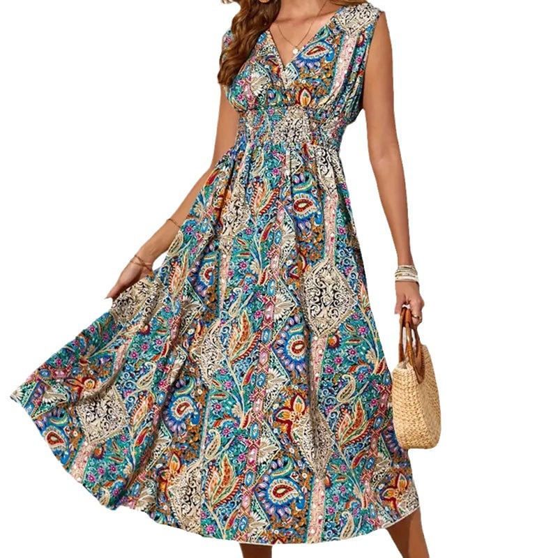 | nameOriginal | Ins Cross-border Foreign Trade Women's Printed V-neck Sleeveless Dress Spring and Summer Women's Design Sense Contrasting Long Dress Skirt |