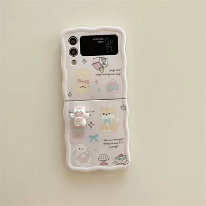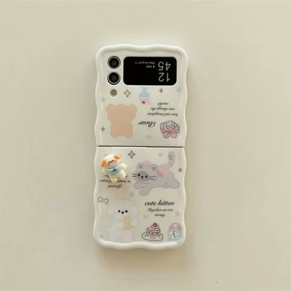 nameOriginal | ins cute cats, dogs and rabbits Samsung zflip5 mobile phone case folding screen zflip4 silicone protective cover zflip3 anti-fall soft shell F7310 creative cartoon W24 Flip personalized women's flip cover |