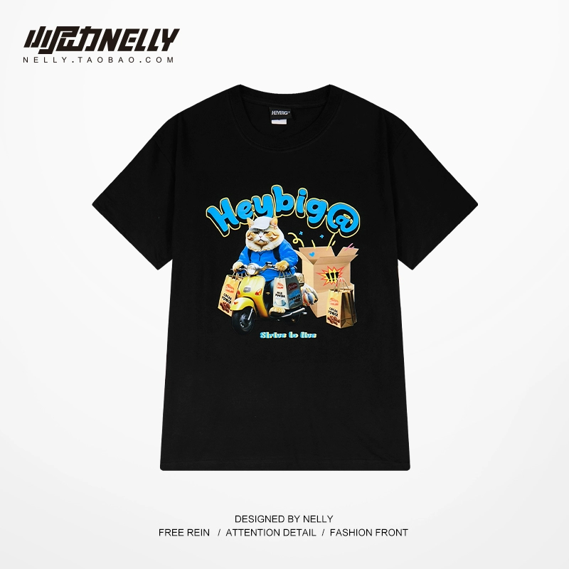 ins design interesting cat print short-sleeved t-shirt for men and women pure cotton loose half-sleeved t-shirt niche round neck top