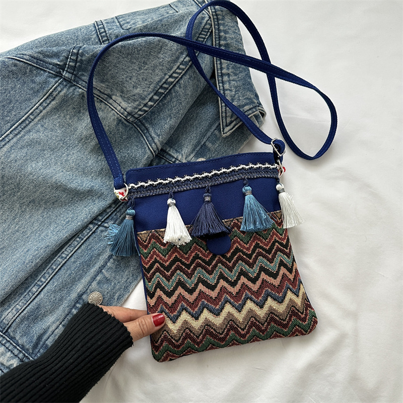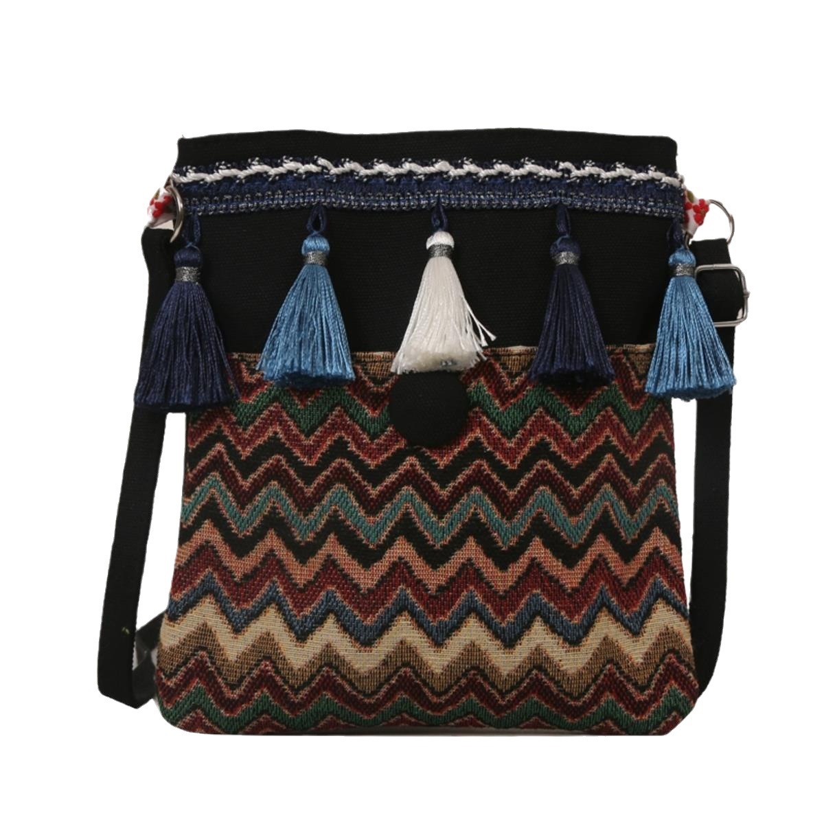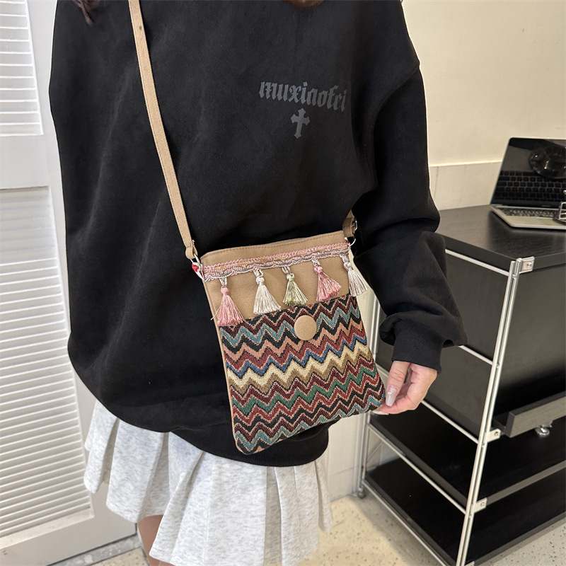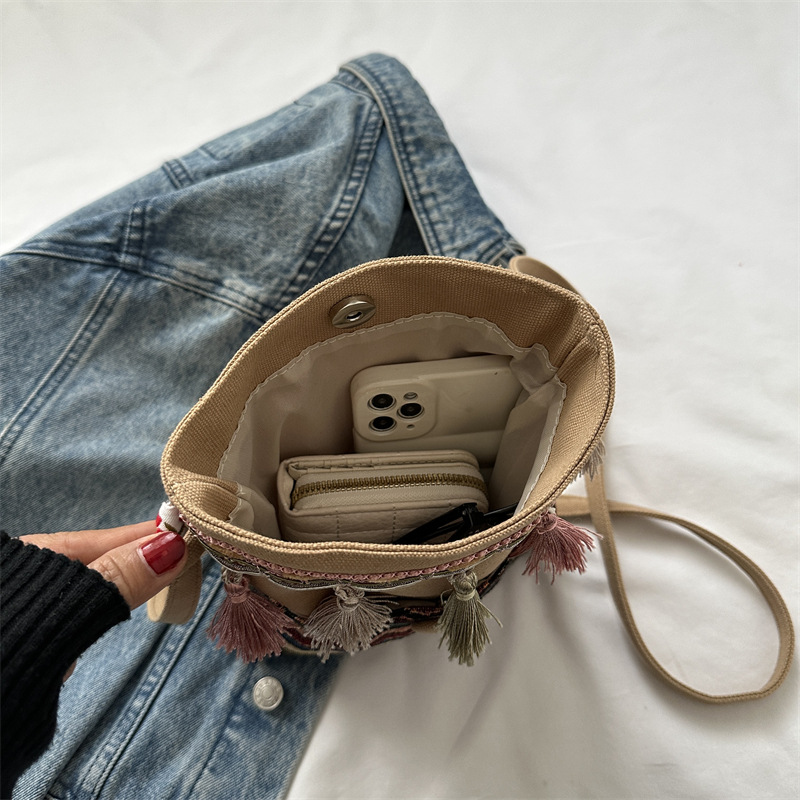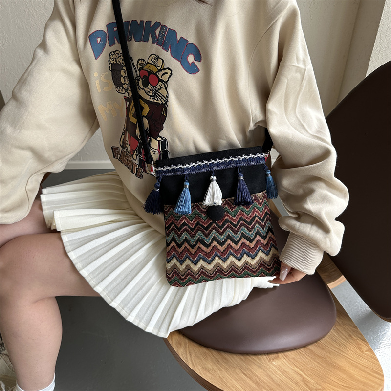 | nameOriginal | Ins Ethnic Style Bag Fashion Contrast Color Crossbody Bucket Bag Stitching Retro Tassel Shoulder Bag |