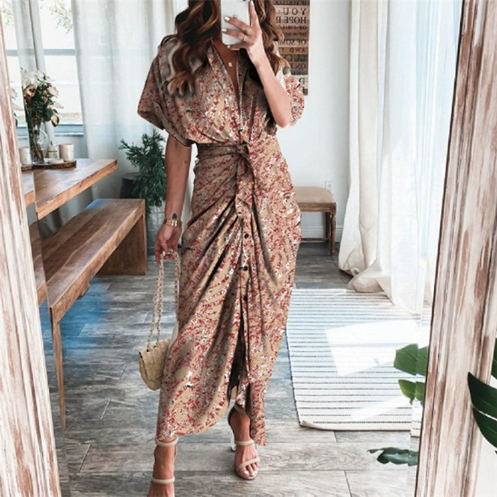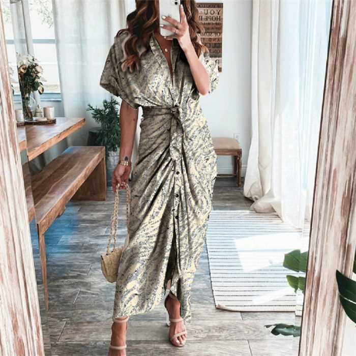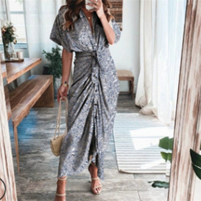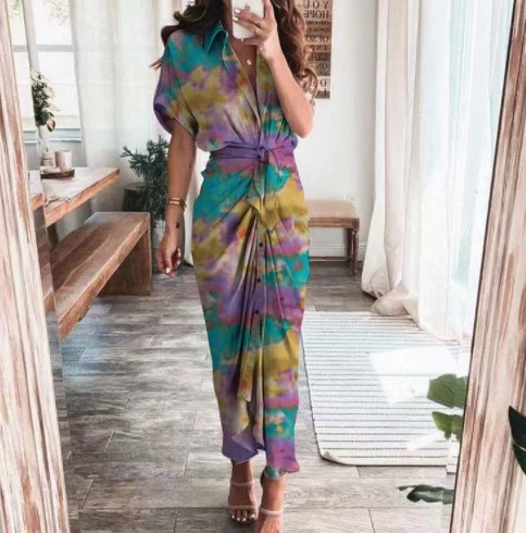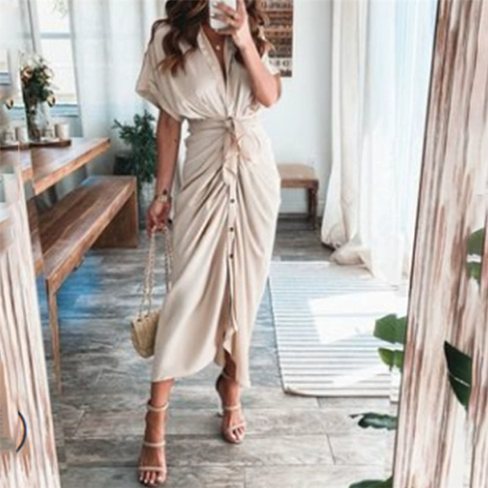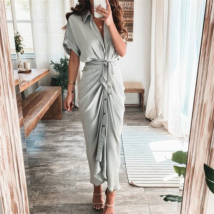 ins European and American sexy slim shirt dress long dress midi blouse shirt dress women