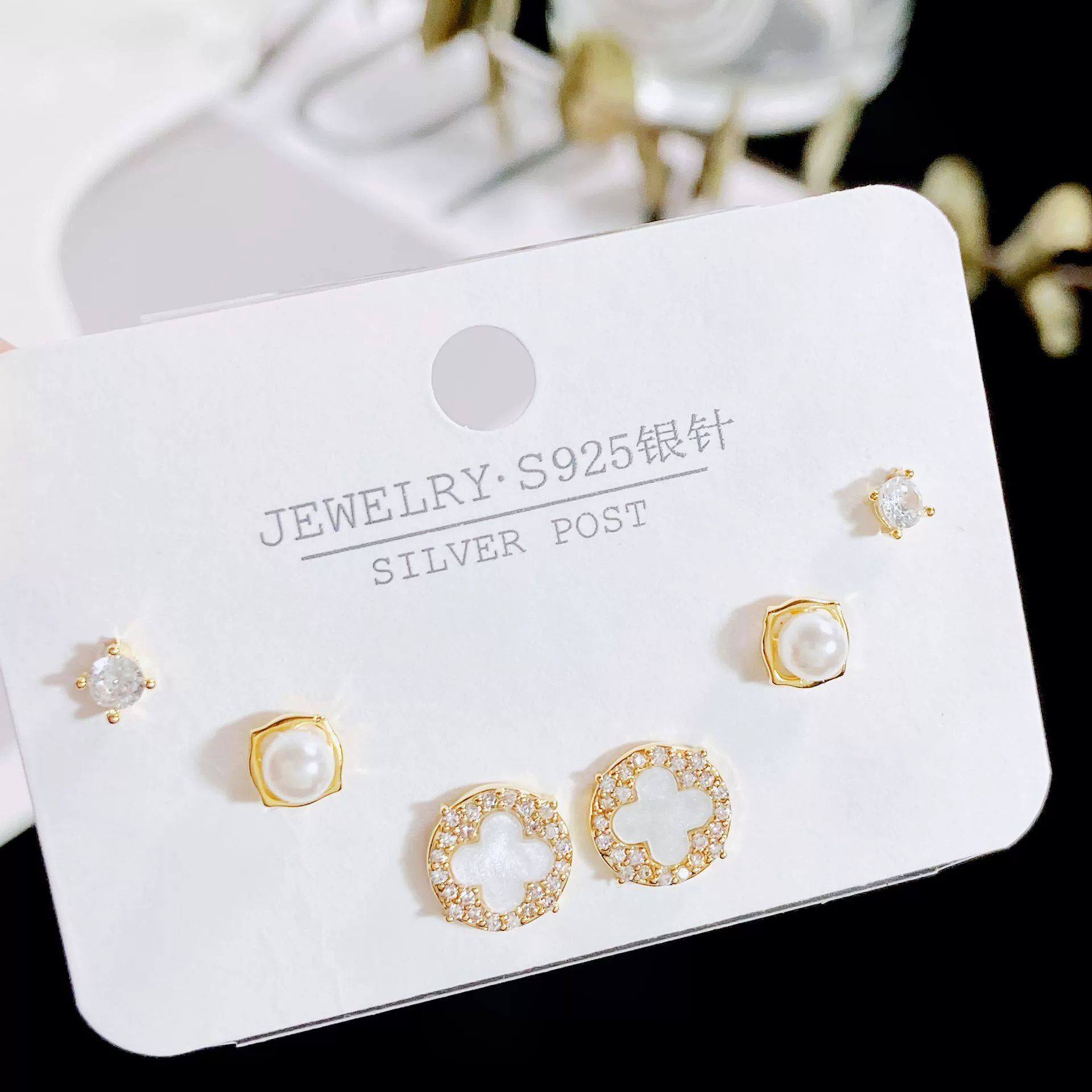 | nameOriginal | ins exquisite earrings for women 925 silver needles four-leaf clover |