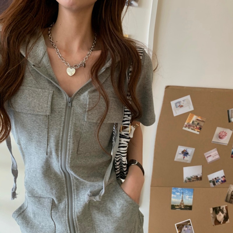| nameOriginal | Ins Fashion Zipper Dress Women's 2024 New Summer Korean Style Western Style Loose Casual Short Sleeve Hooded Top |