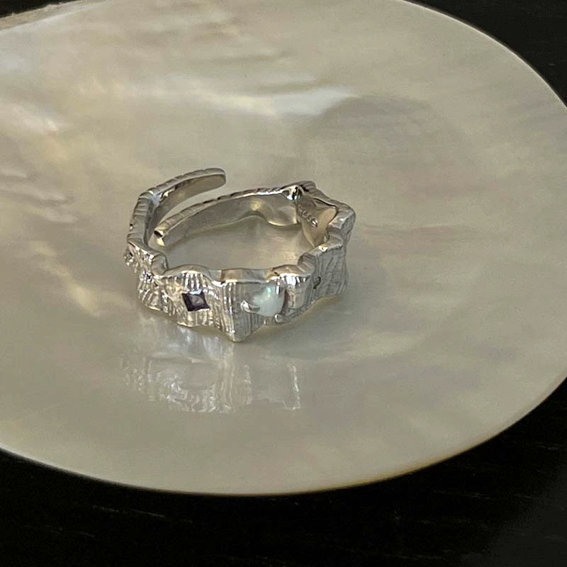 | nameOriginal | ins female wrinkled textured colored diamond geometric ring |