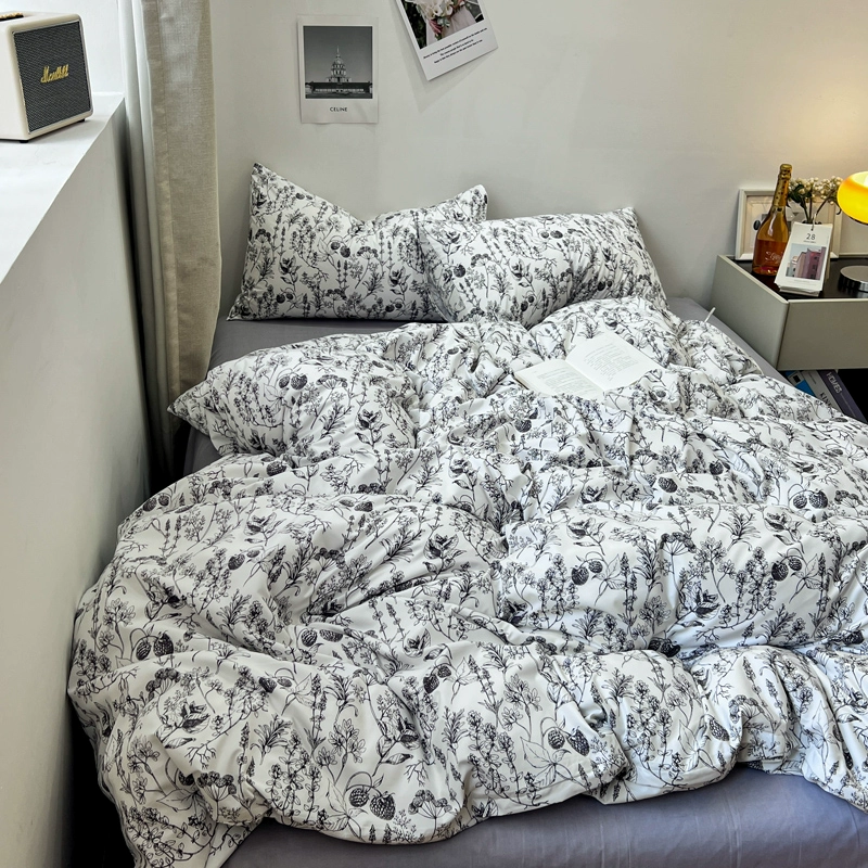 | nameOriginal | ins French retro small floral bed four-piece washed cotton nude quilt cover 1.8 m bed sheet three-piece set |