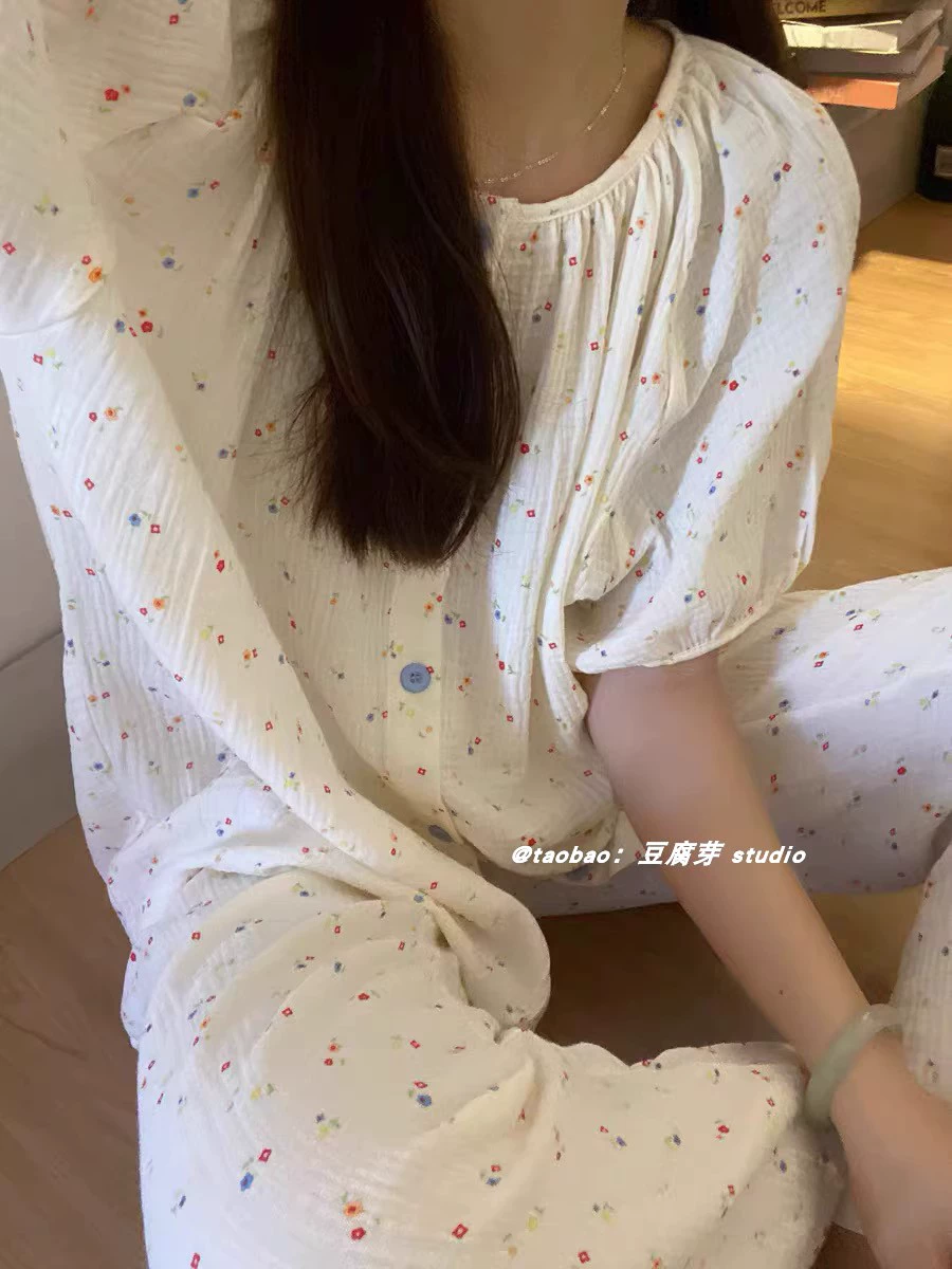 ins fresh and simple floral women's long-sleeved trousers pajamas