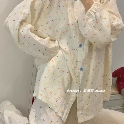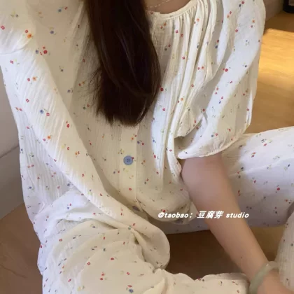 ins fresh and simple floral women’s long-sleeved trousers pajamas