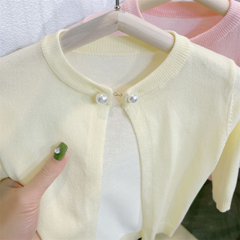 | nameOriginal | Ins Girl's One Button Knitted Waistcoat Baby Girl's Thin Skirt Small Cardigan Children's Sunscreen Air-conditioning Suit Summer |