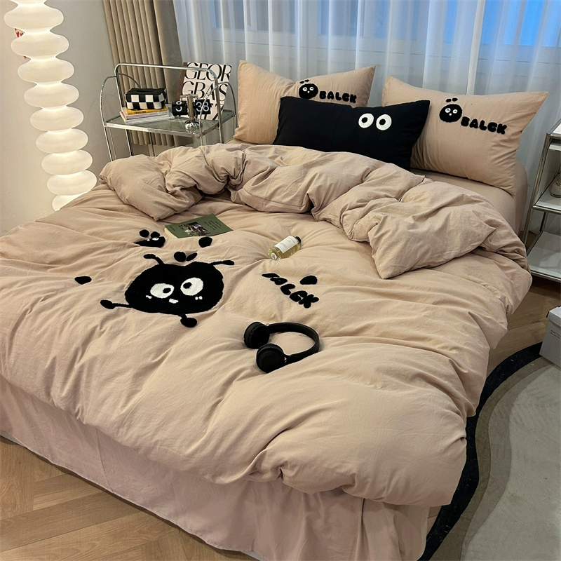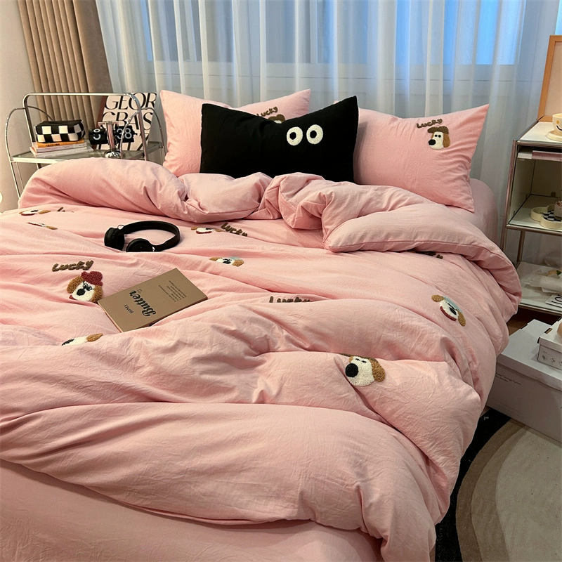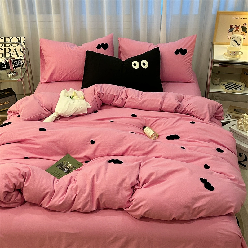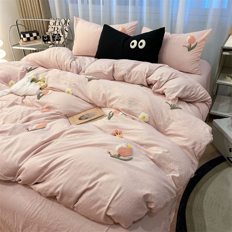 | nameOriginal | ins girly heart pink tulip towel embroidered washed cotton bed four-piece set 1.8 m bed sheet three-piece set |