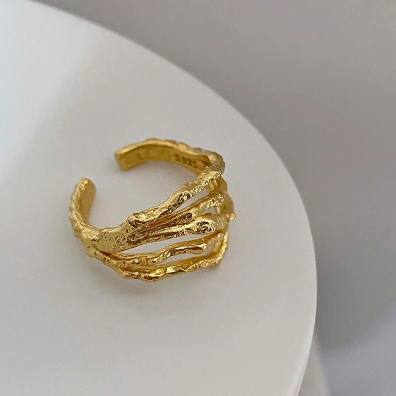 | nameOriginal | ins golden female 925 silver texture cross-border open ring |