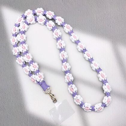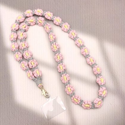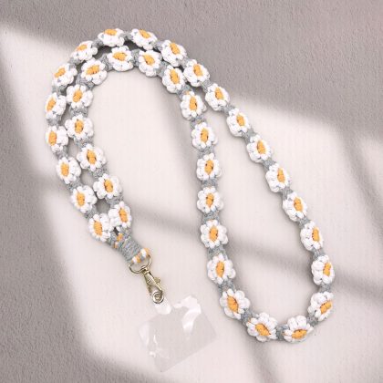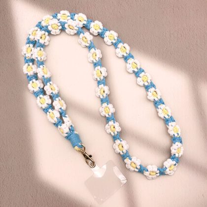 Ins Handmade Woven Artistic Fresh Summer Daisy Flower Mobile Phone Bag Crossbody Lanyard Keychain Pendant