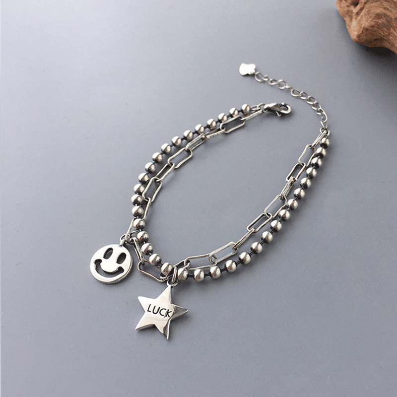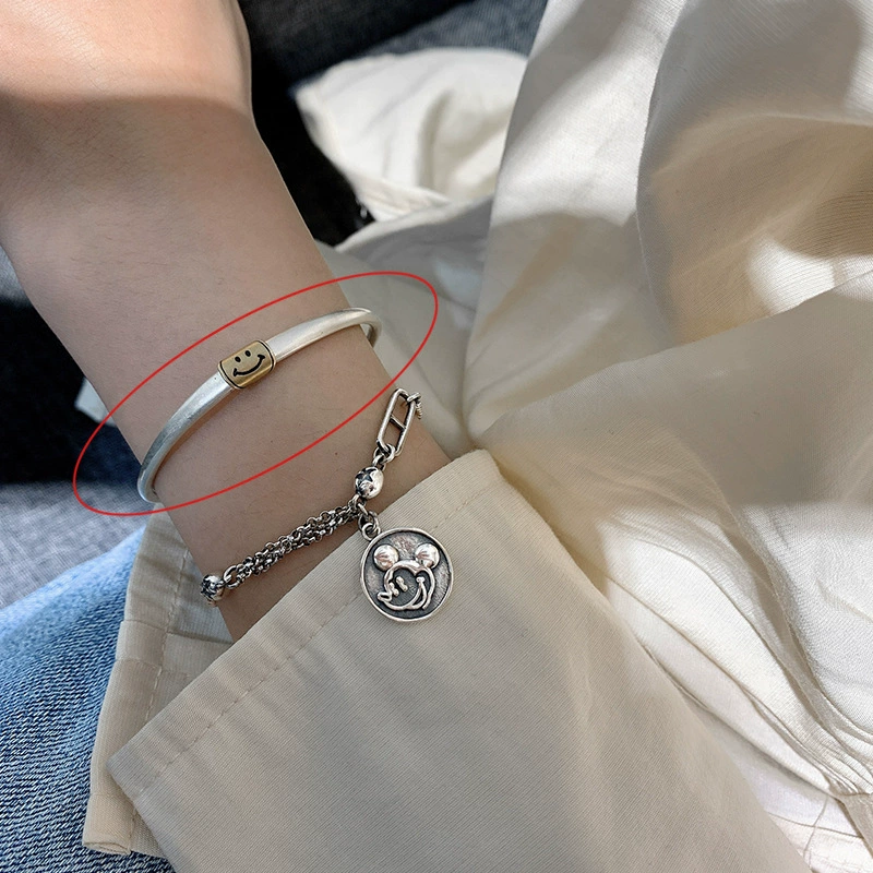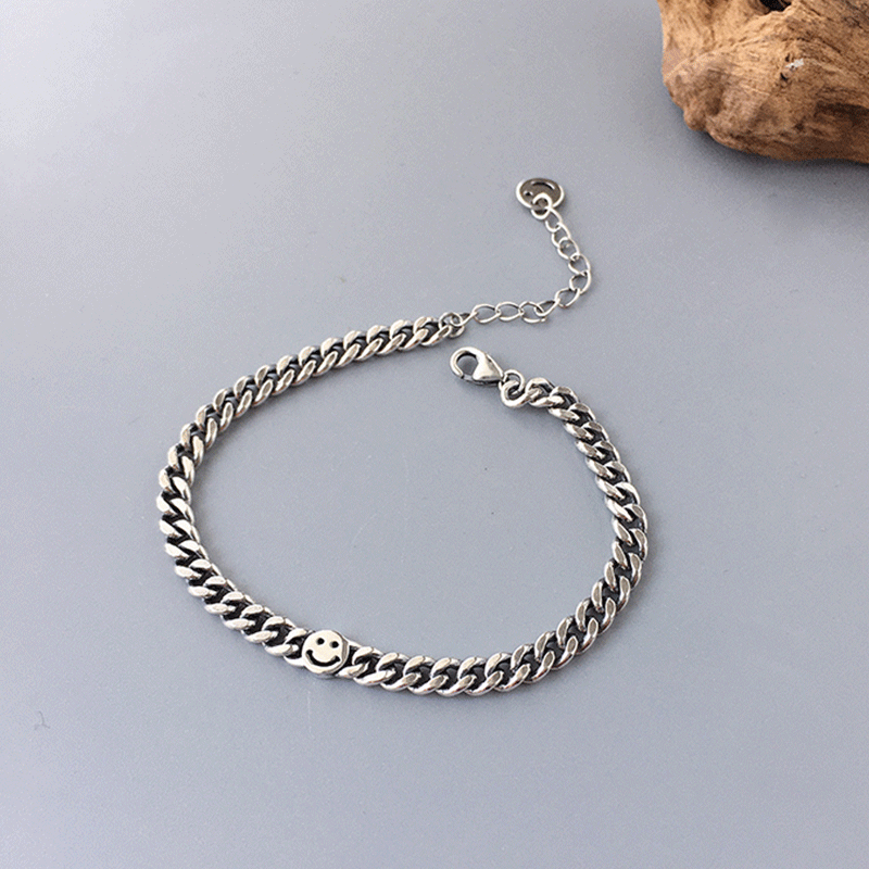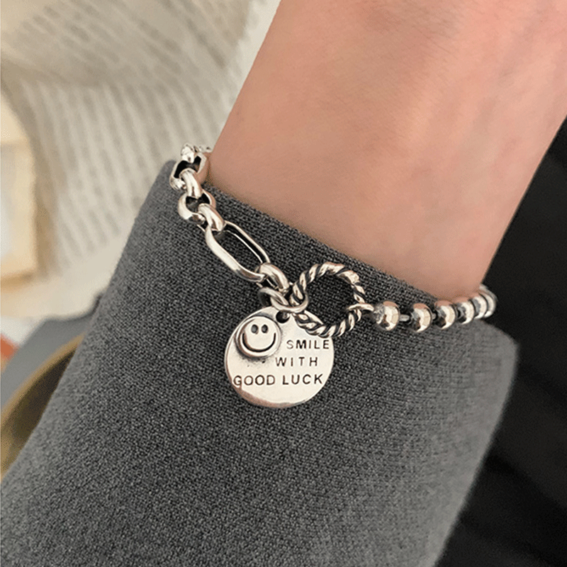 | nameOriginal | ins heavy industry smile round brand women's 925 sterling silver bracelet |