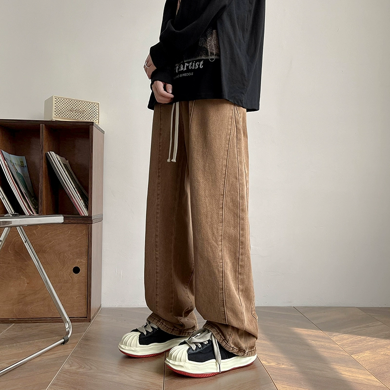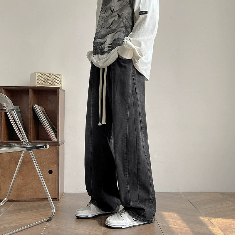 | nameOriginal | ins high-end black and gray drawstring elastic waist pants |