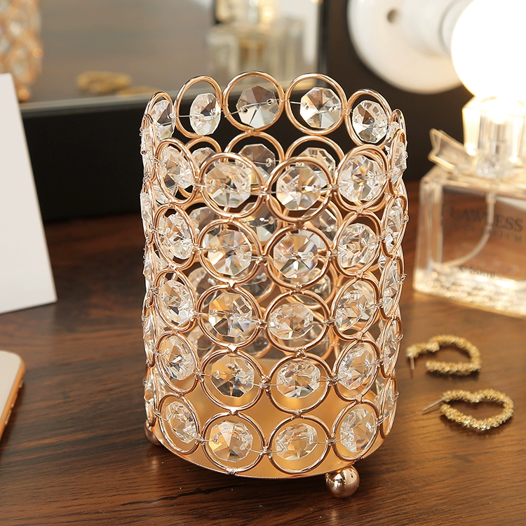 | nameOriginal | ins internet celebrity dressing table desktop beauty brush eyebrow pencil storage box makeup brush storage tube European style crystal pen bucket |