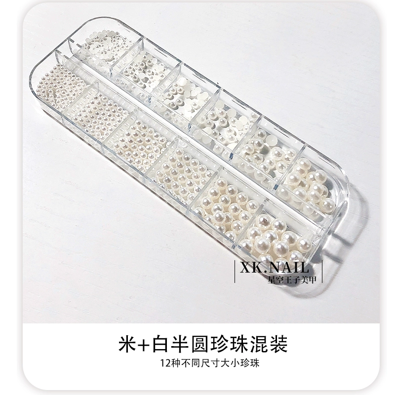| nameOriginal | Ins Internet celebrity highlight off-white pearl mixed manicure |