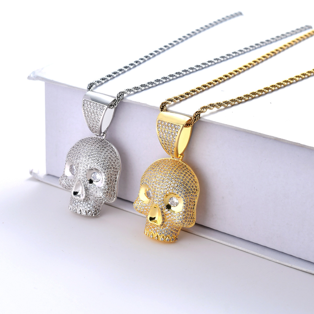 ins Internet celebrity hip hop style Micro inlaid zircon skull pendant hip hop jewelry cross-border e-commerce one-piece delivery
