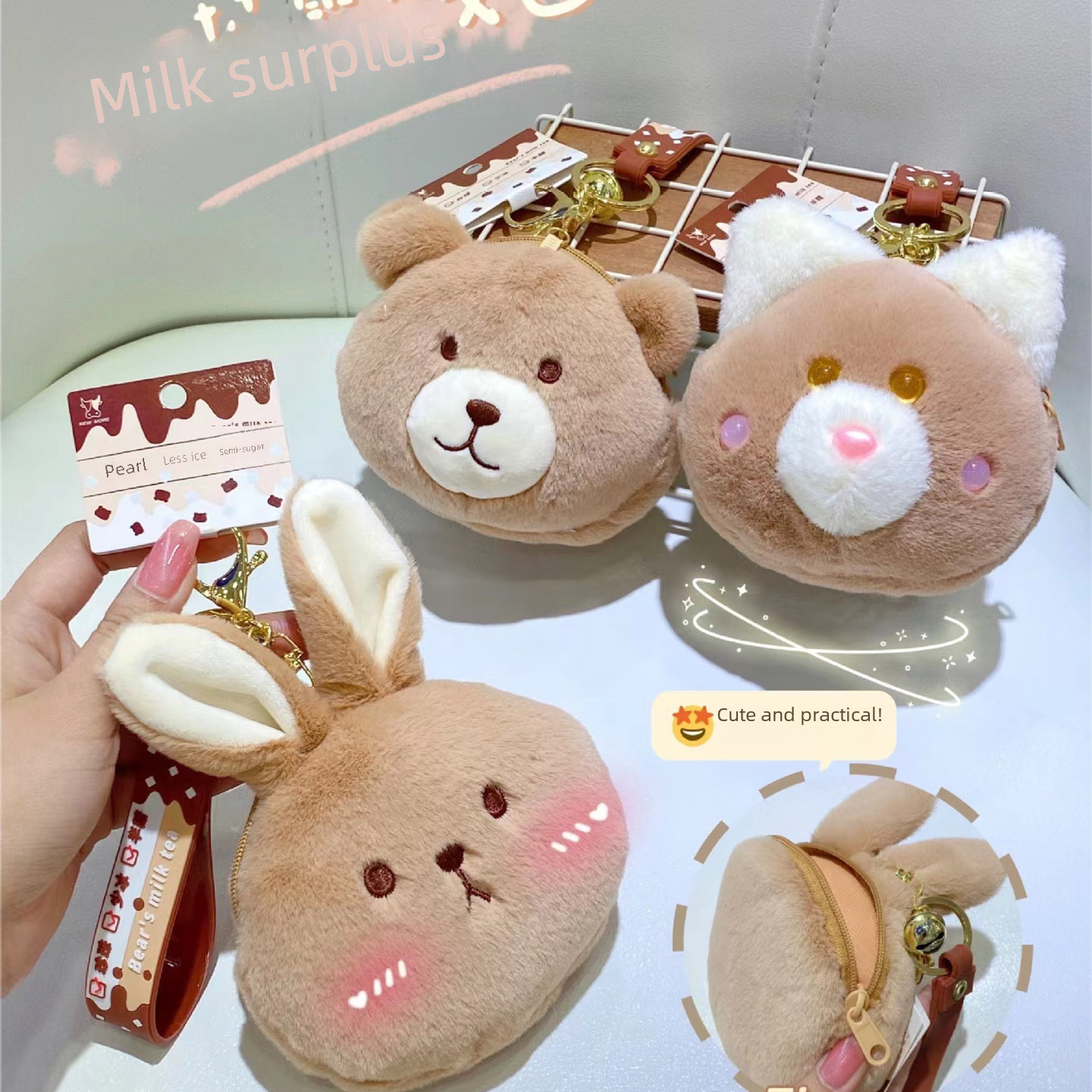 | nameOriginal | ins Internet Celebrity Pearl Milk Tea Cute Pet Plush Coin Purse Rope Buckle Creative Bear Coin Storage Small Bag Supply |