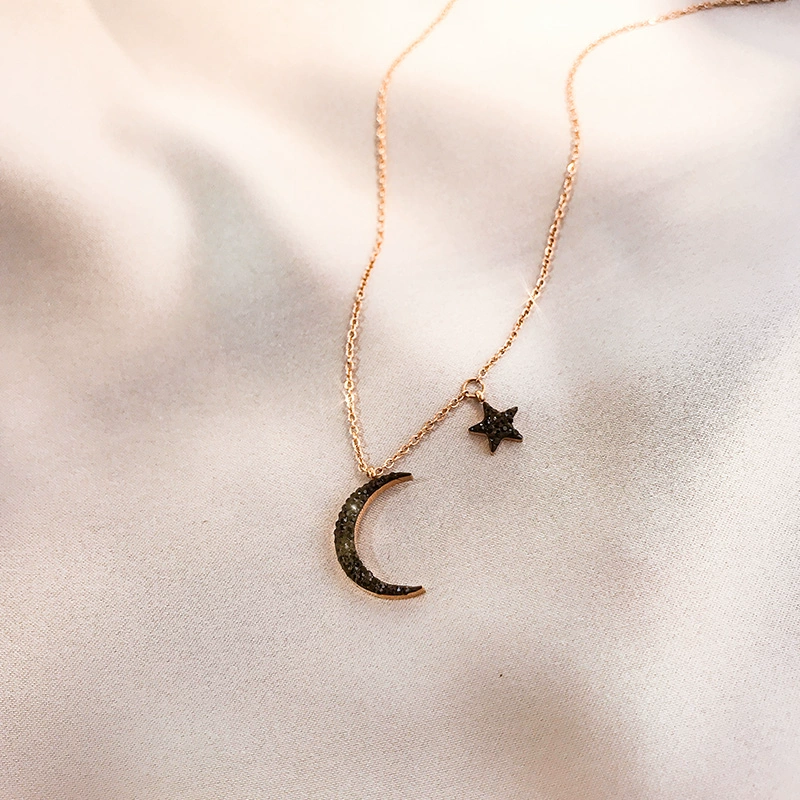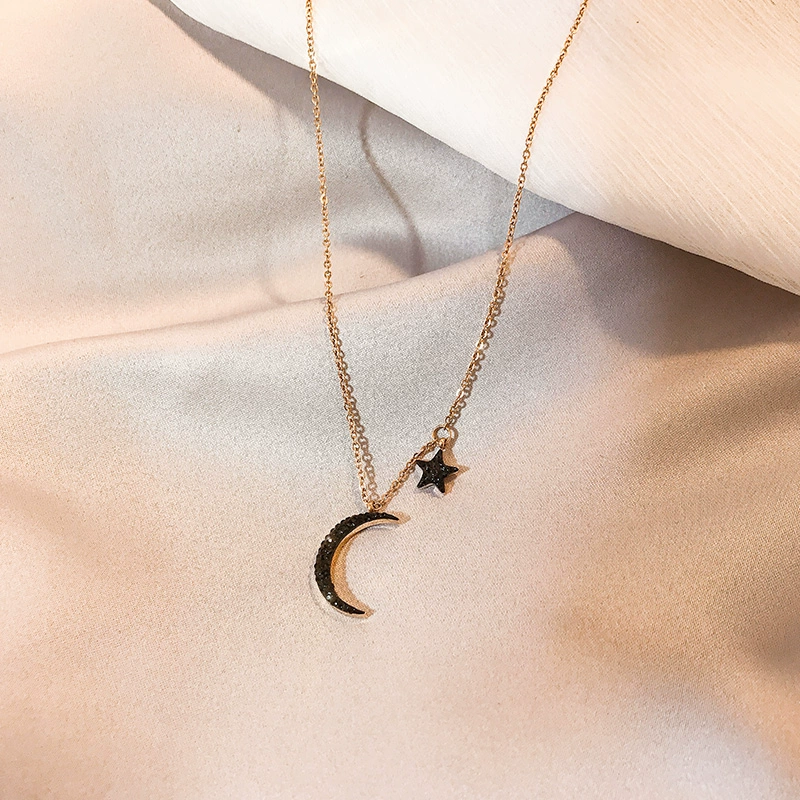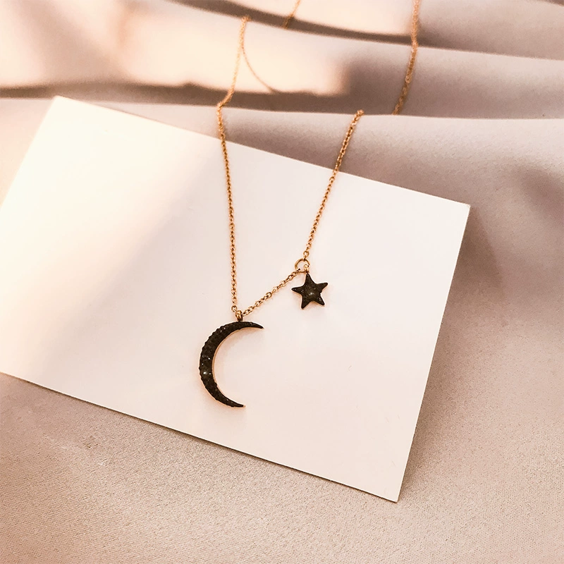 | nameOriginal | Ins Internet celebrity star and moon necklace women's black pendant personality temperament trendy clavicle chain fashion neck chain titanium steel |