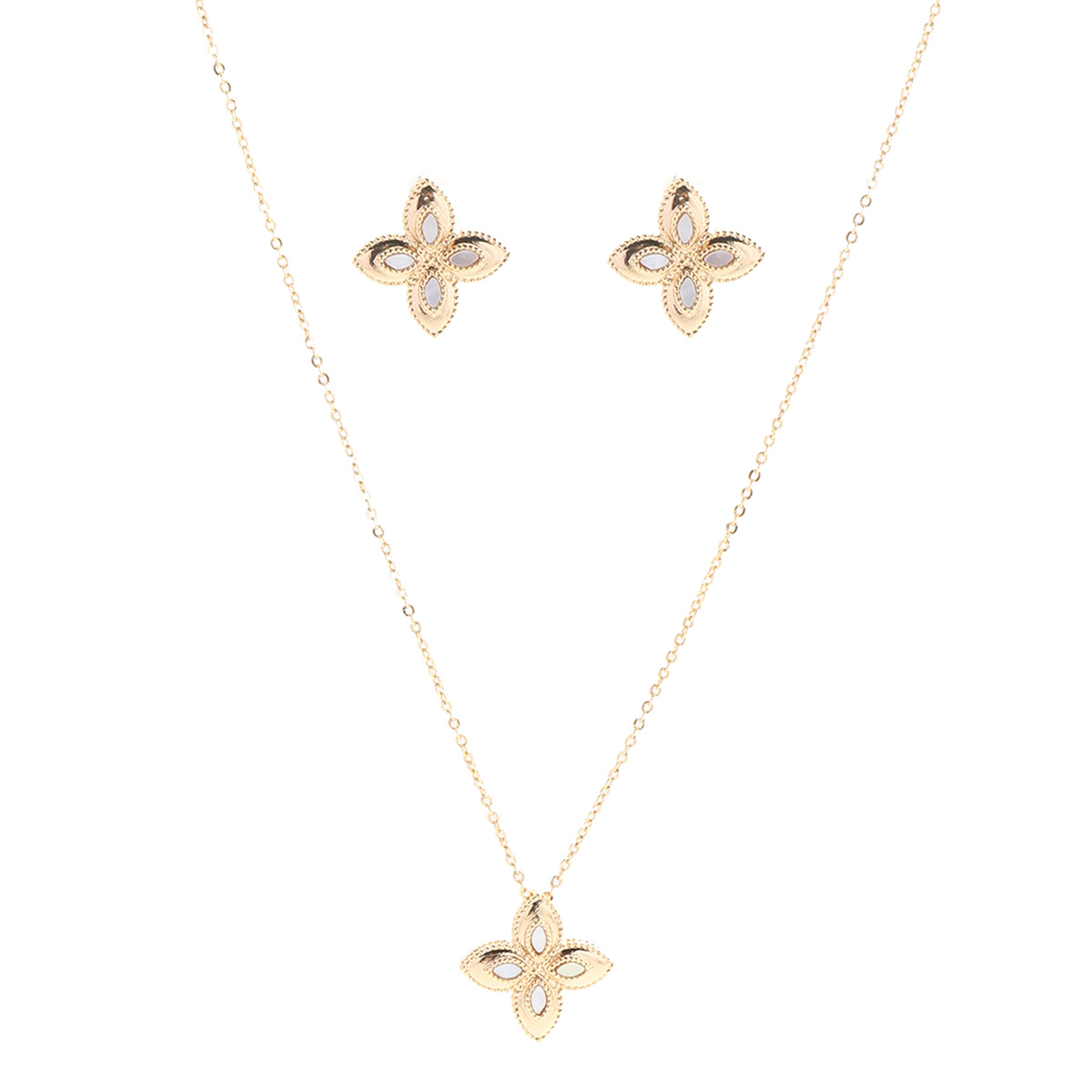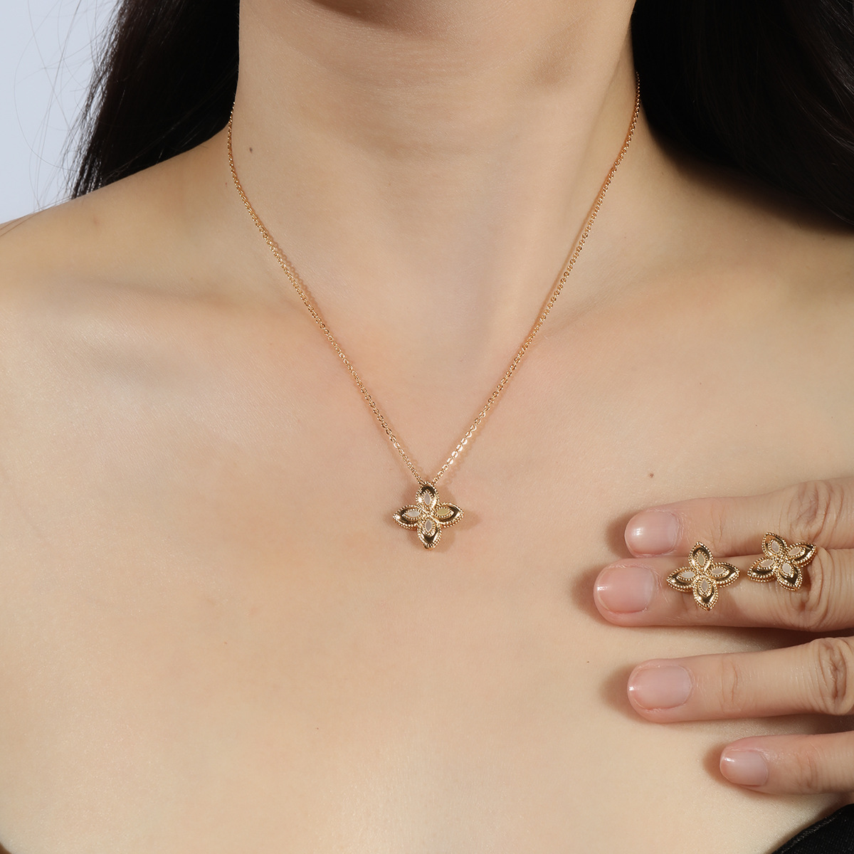 | nameOriginal | Ins Japanese and Korean Style Small Petal Four-leaf Flower Four-leaf Clover Earrings Necklace suit Niche High-end Jewelry Women |