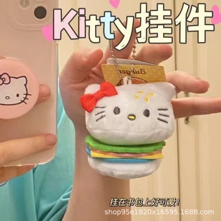 ins Japanese cute apple KT cat pendant hamburger HelloKitty plush doll lucky bag pendant