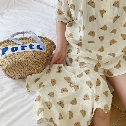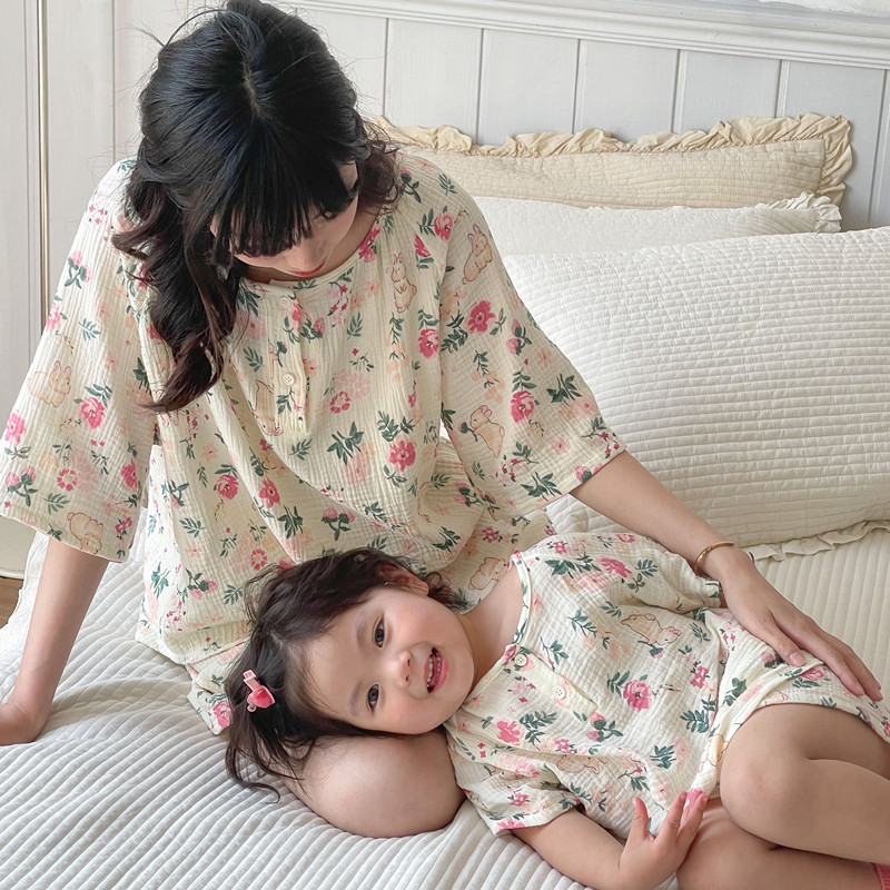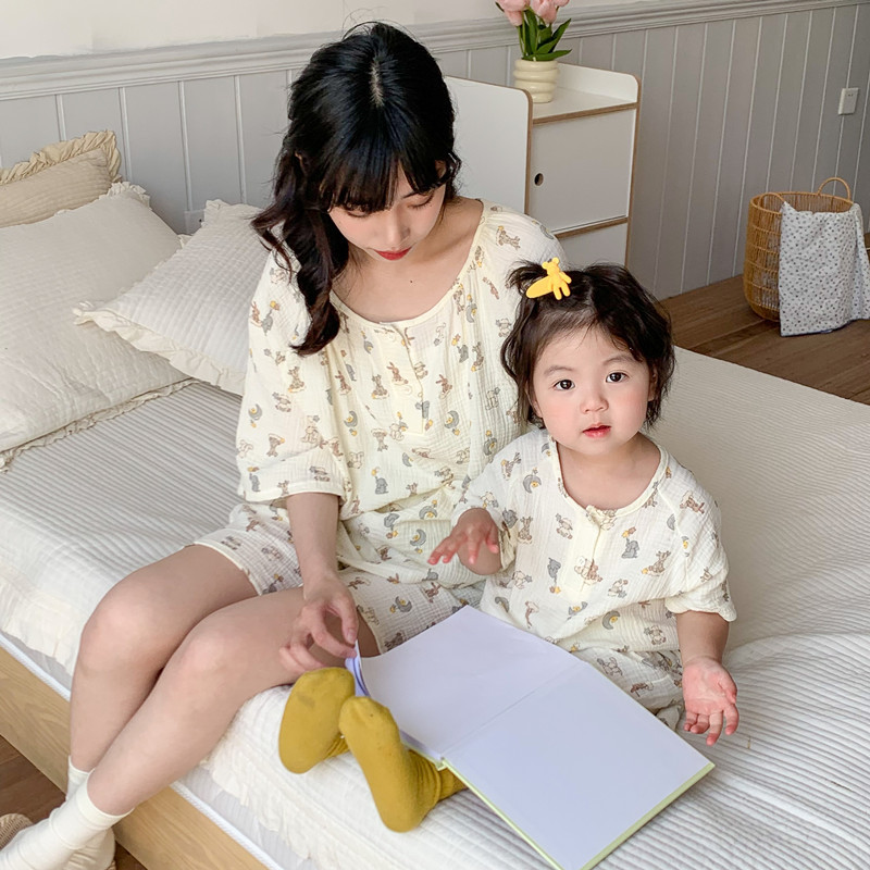 | nameOriginal | ins Japanese Style Double-layer Gauze Cotton Yarn Parent-child Pajamas Summer Thin Children's Home Suit Short-sleeved Short Pants Cover |