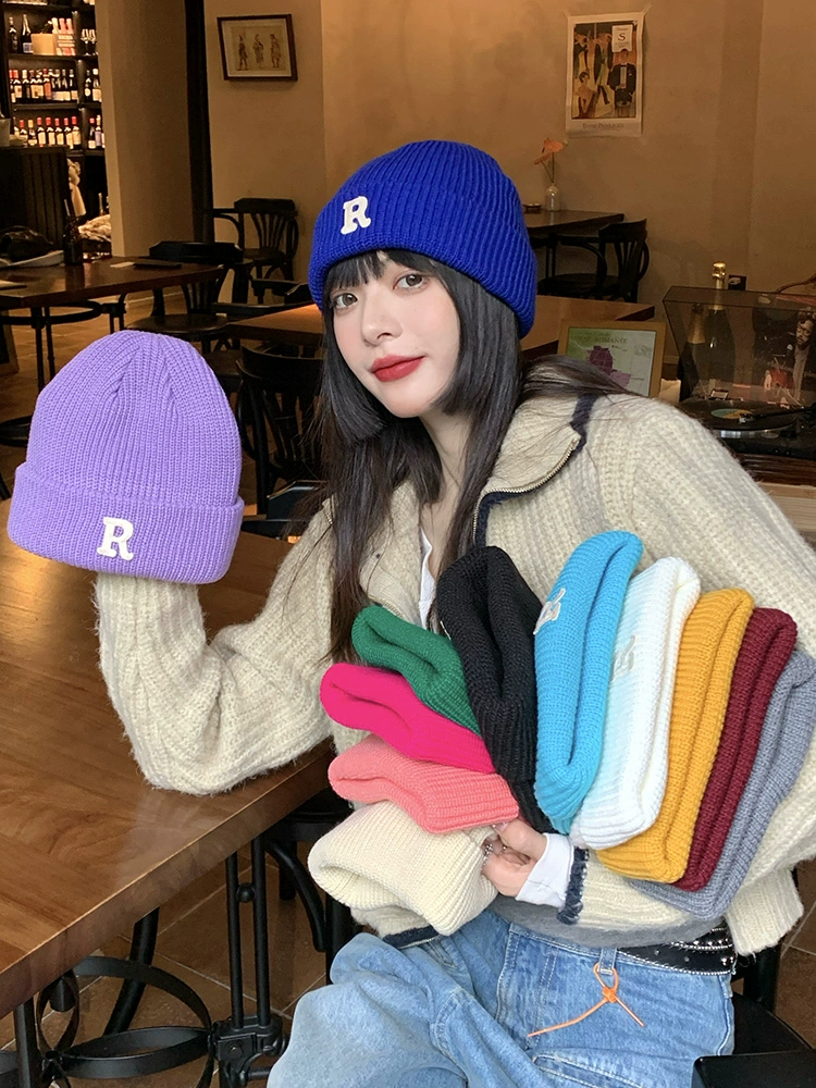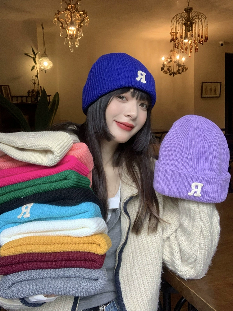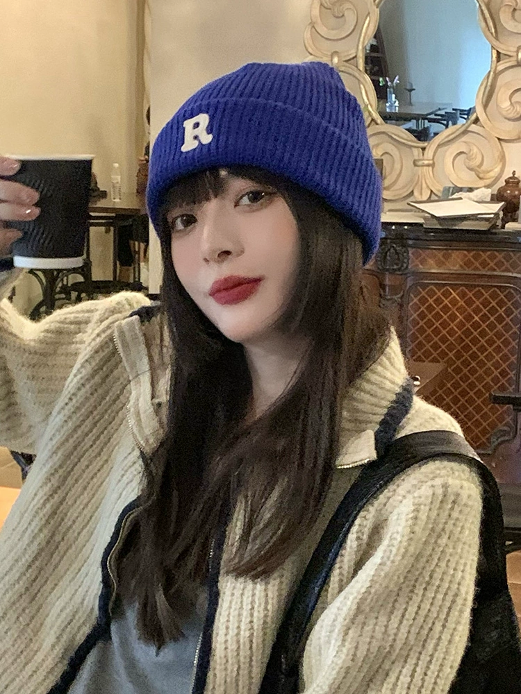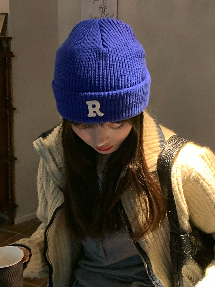 | nameOriginal | ins Klein blue R letter woolen hat for women in autumn and winter, versatile knitted hat, winter warm ear protection, cold hat for men, trendy |
