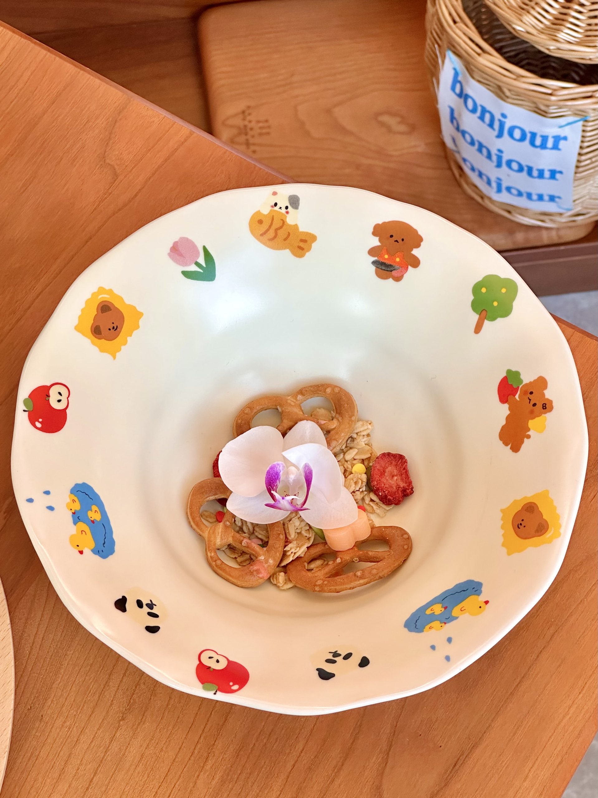 | nameOriginal | Ins Korean Style Cute Bear Cream Cherry Girl Ceramic Plate Deep Plate Dish Fruit Salah Plate Soup Dish Plate |