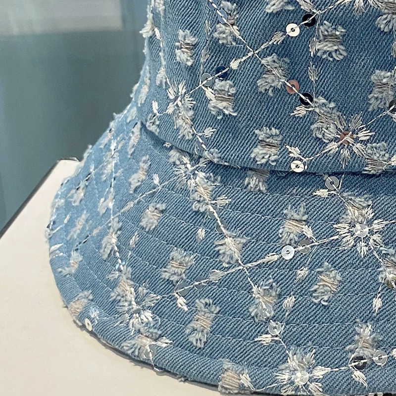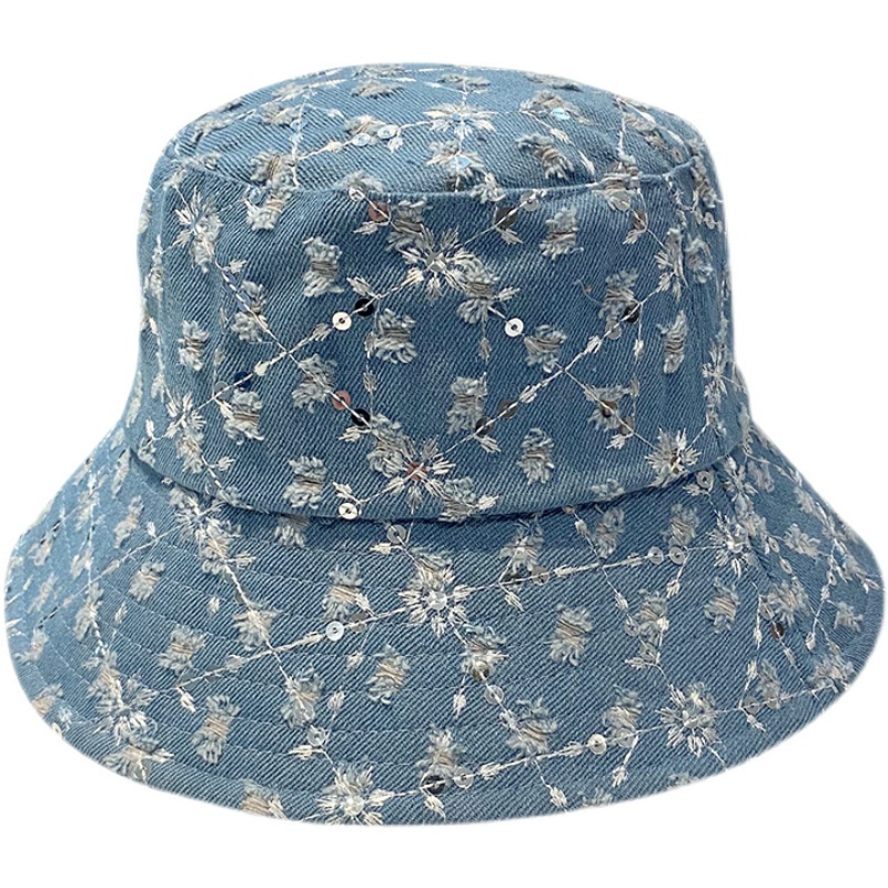| nameOriginal | ins Korean style fashionable sequined denim fisherman hat Japanese style casual all-match small flower pot hat spring and summer sun protection hat for women |